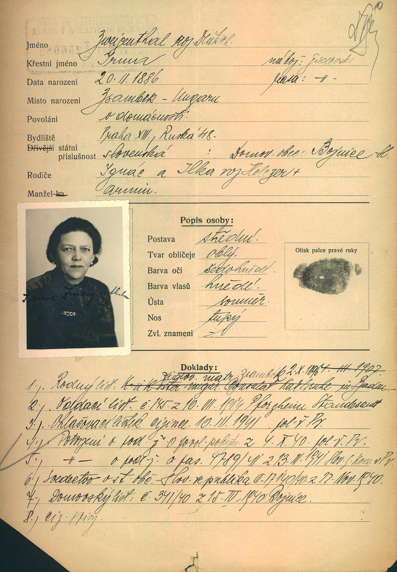 National archives Prague > Police Directorate Prague > 1941-1950 > Z > Zweigenthalová Irma