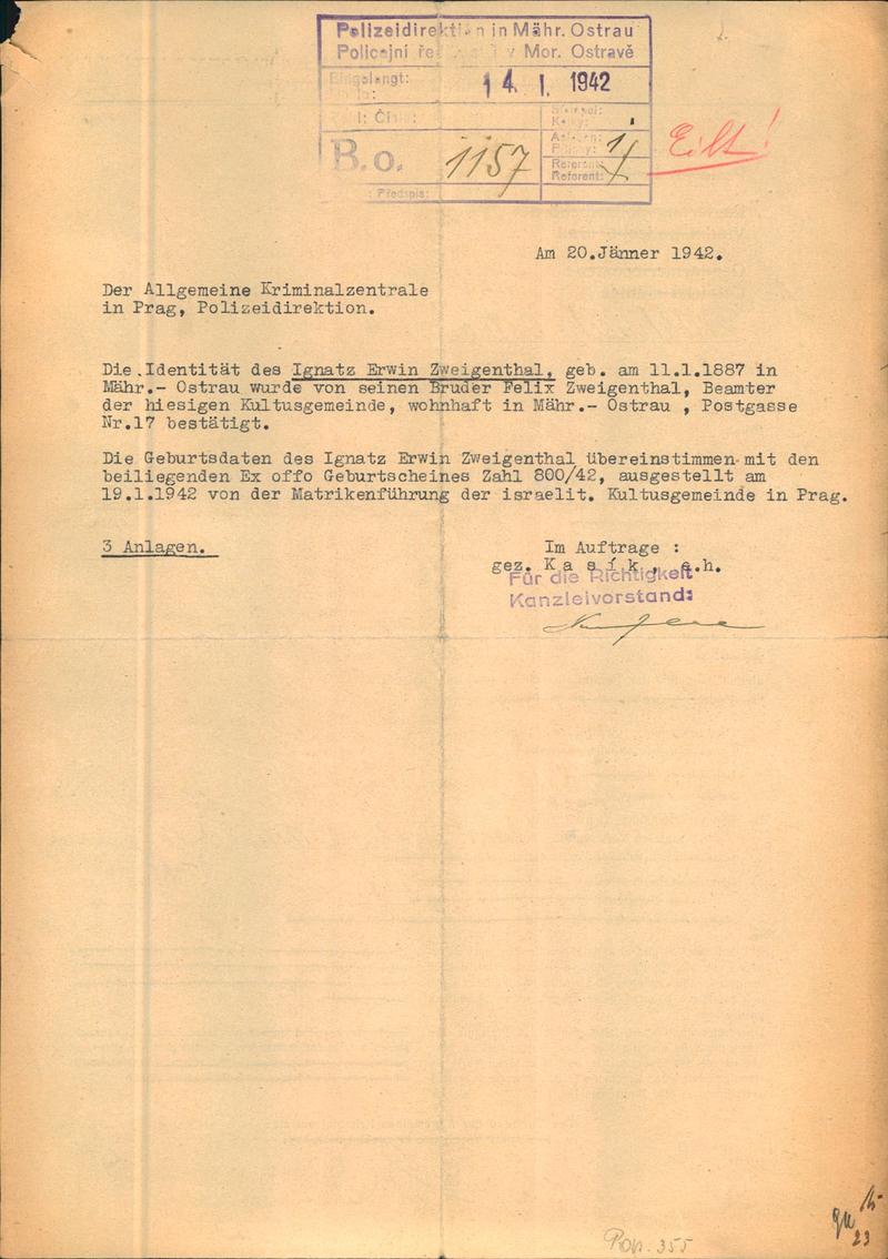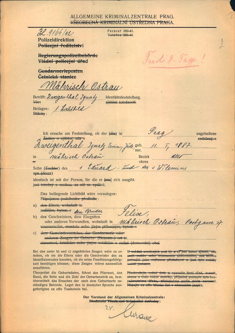 National archives Prague > Police Directorate Prague > 1941-1950 > Z > Zweigenthal Hynek Ervín