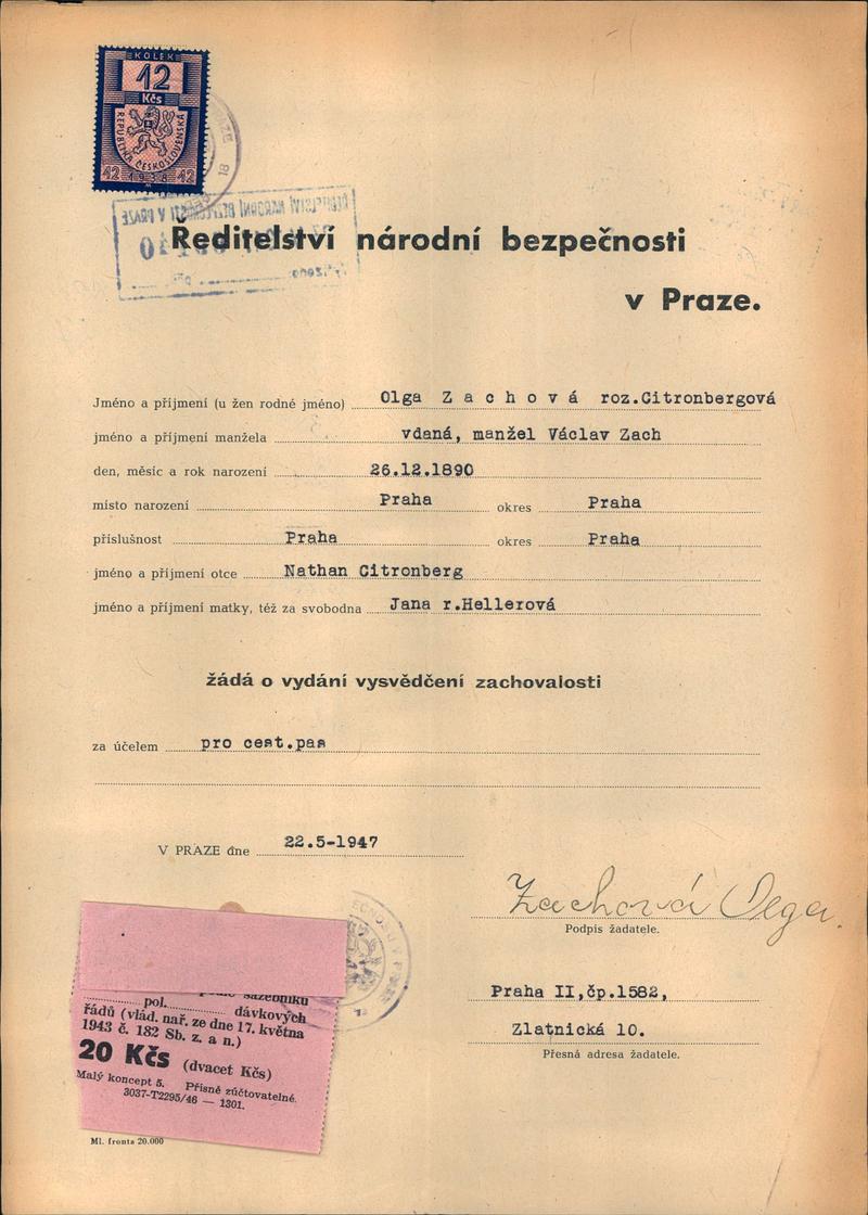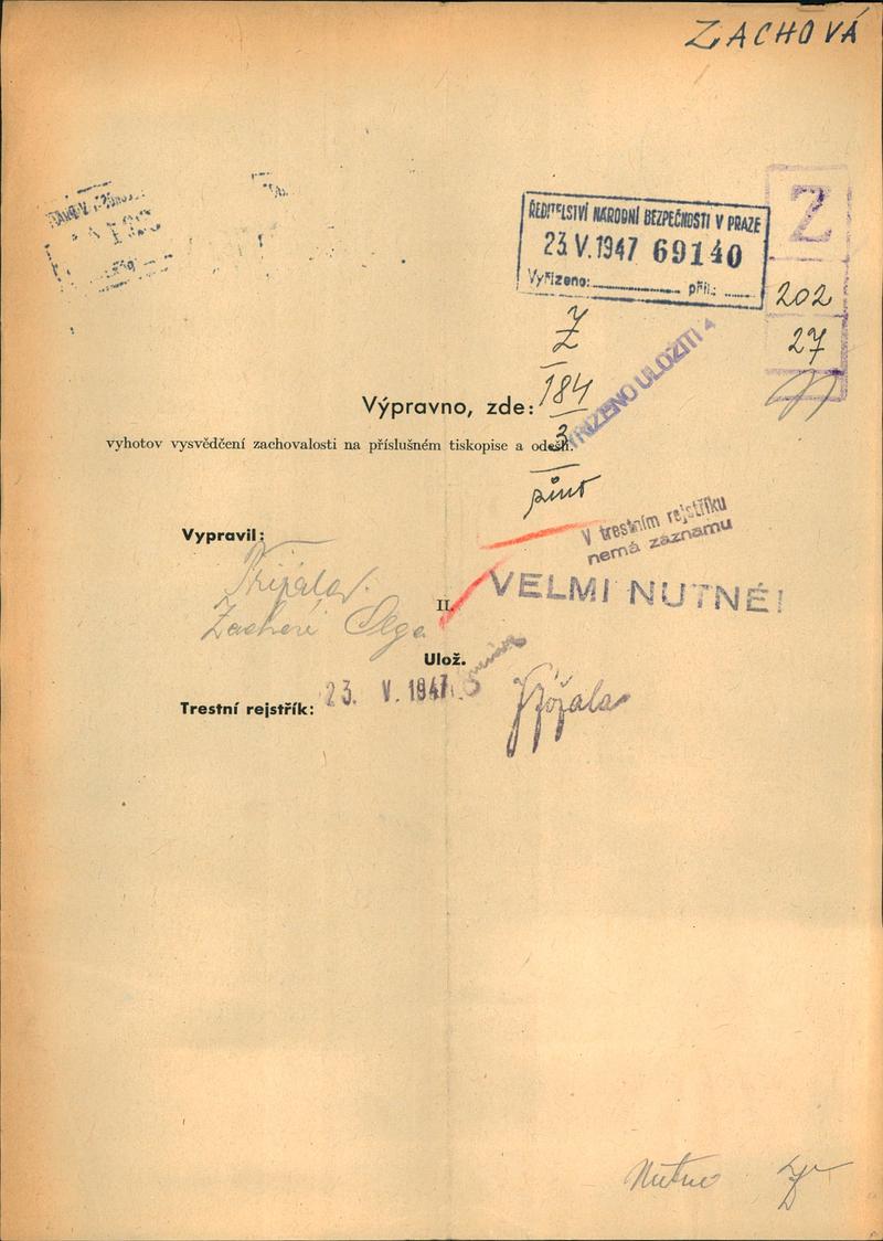 National archives Prague > Police Directorate Prague > 1941-1950 > Z > Zachová Olga