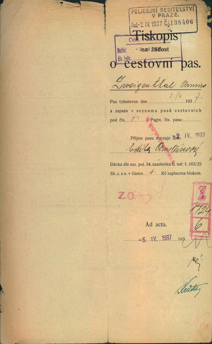 Zweigenthal Armin: Žádost o opravu v cestovním pasu