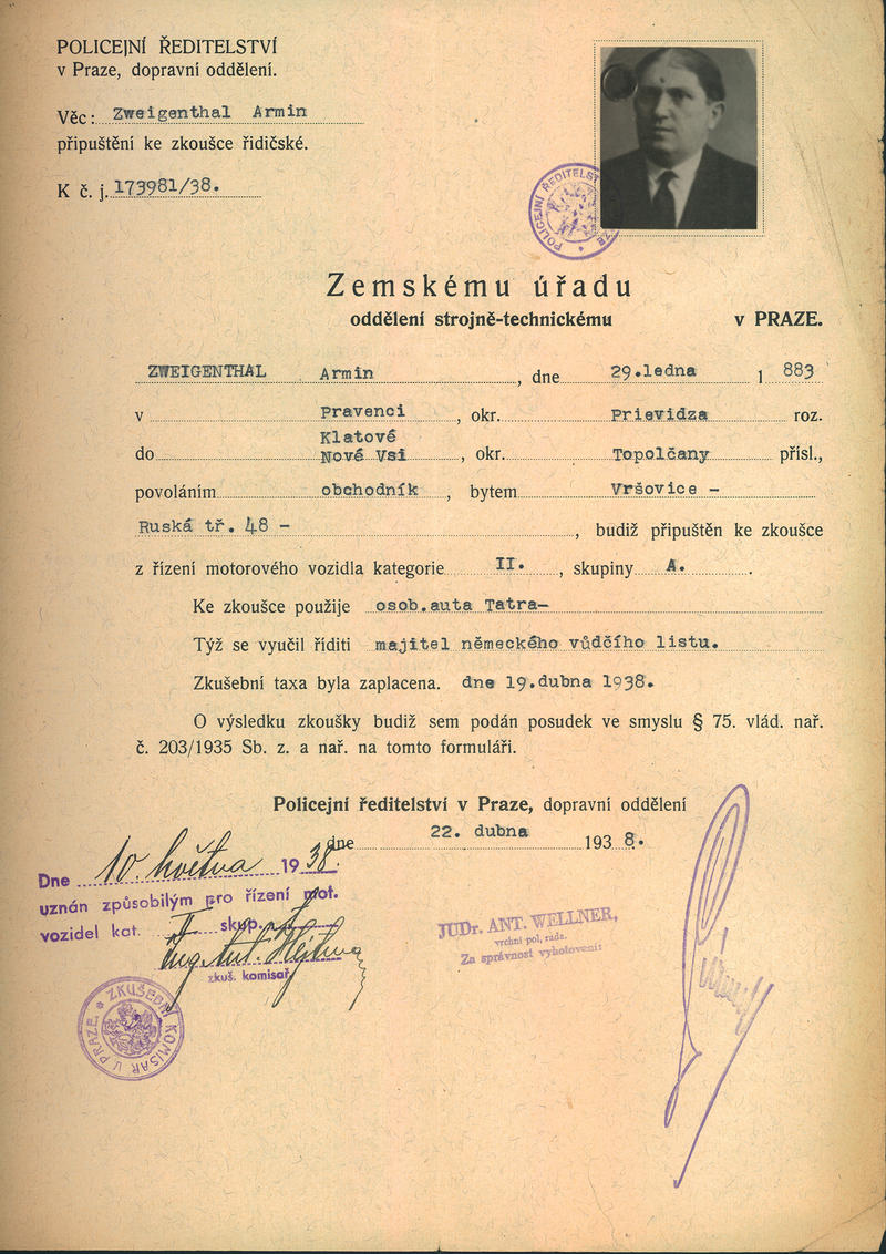 Zweigenthal Armin: Připuštění k řidičské zkoužce