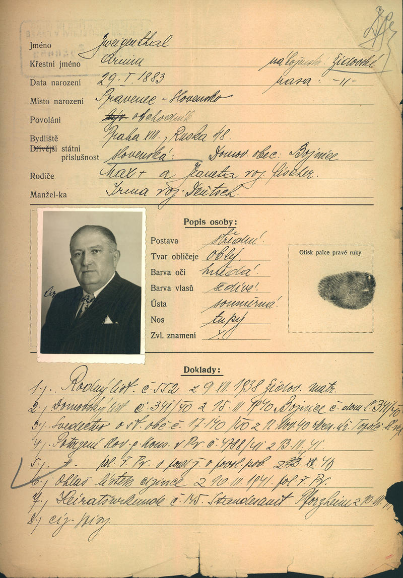 National archives Prague > Police Directorate Prague > 1941-1950 > Z > Zweigenthal Armin
