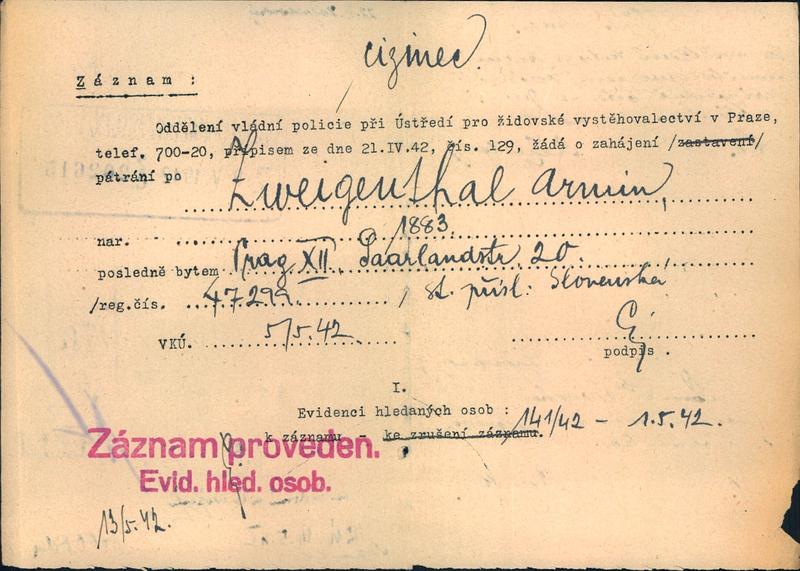 National archives Prague > Police Directorate Prague > 1941-1950 > Z > Zweigenthal Armin
