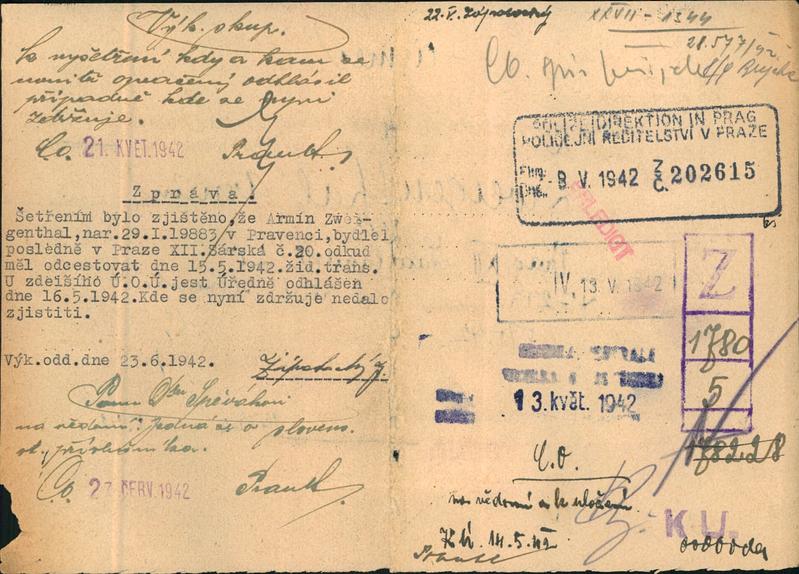 Zweigenthal Armin: Šetření o pobytu odtransportovaných Židů