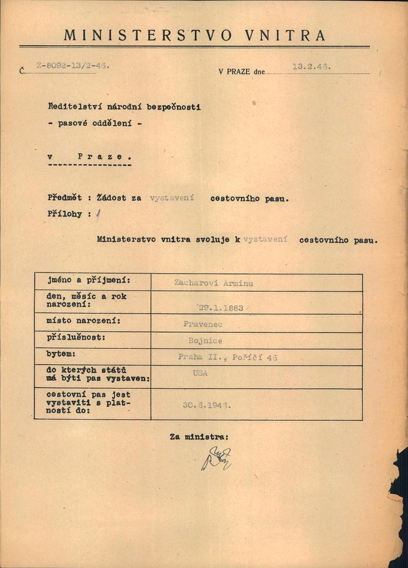 Zweigenthal Armin: Souhlas s vydáním cestovního pasu