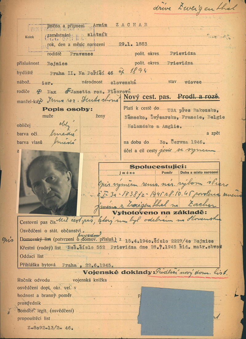 Zweigenthal Armin: Žádost o vydání cestovního pasu