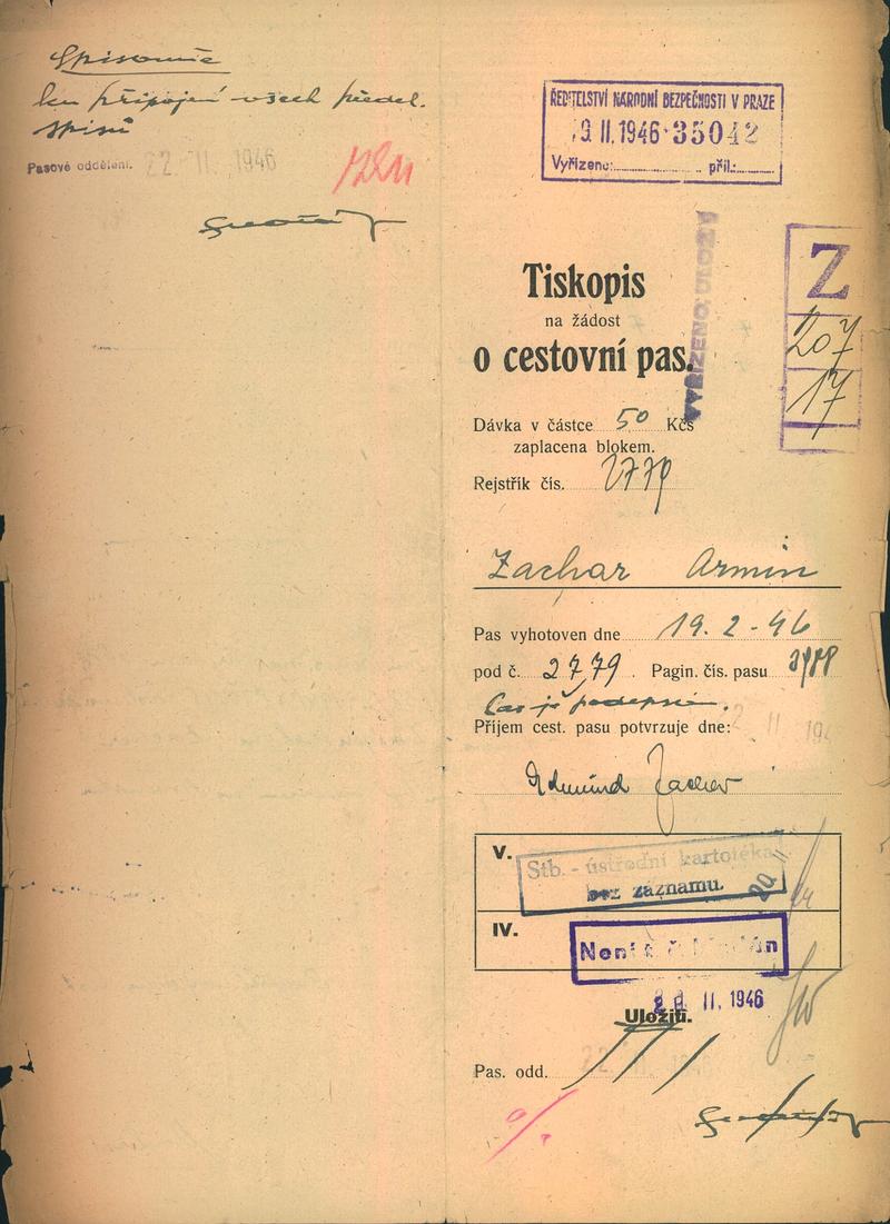 National archives Prague > Police Directorate Prague > 1941-1950 > Z > Zweigenthal Armin