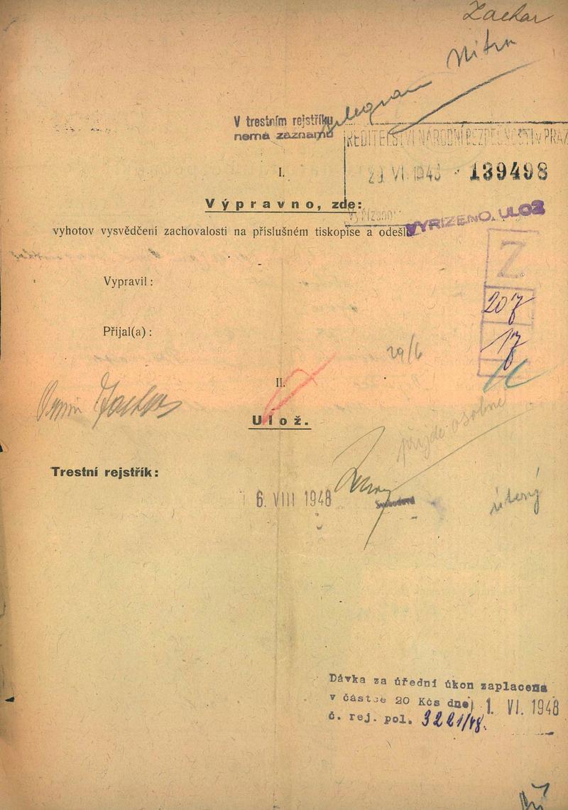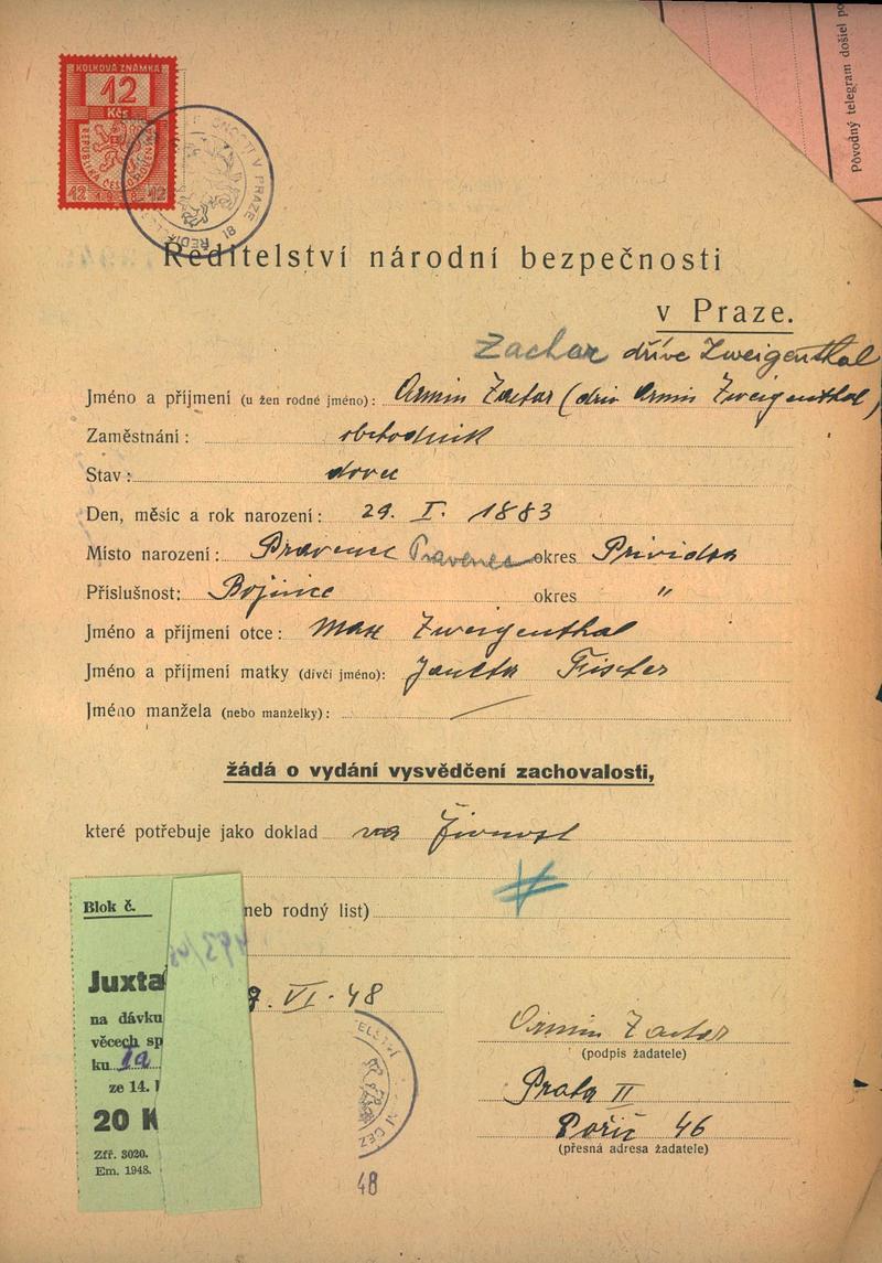 National archives Prague > Police Directorate Prague > 1941-1950 > Z > Zweigenthal Armin