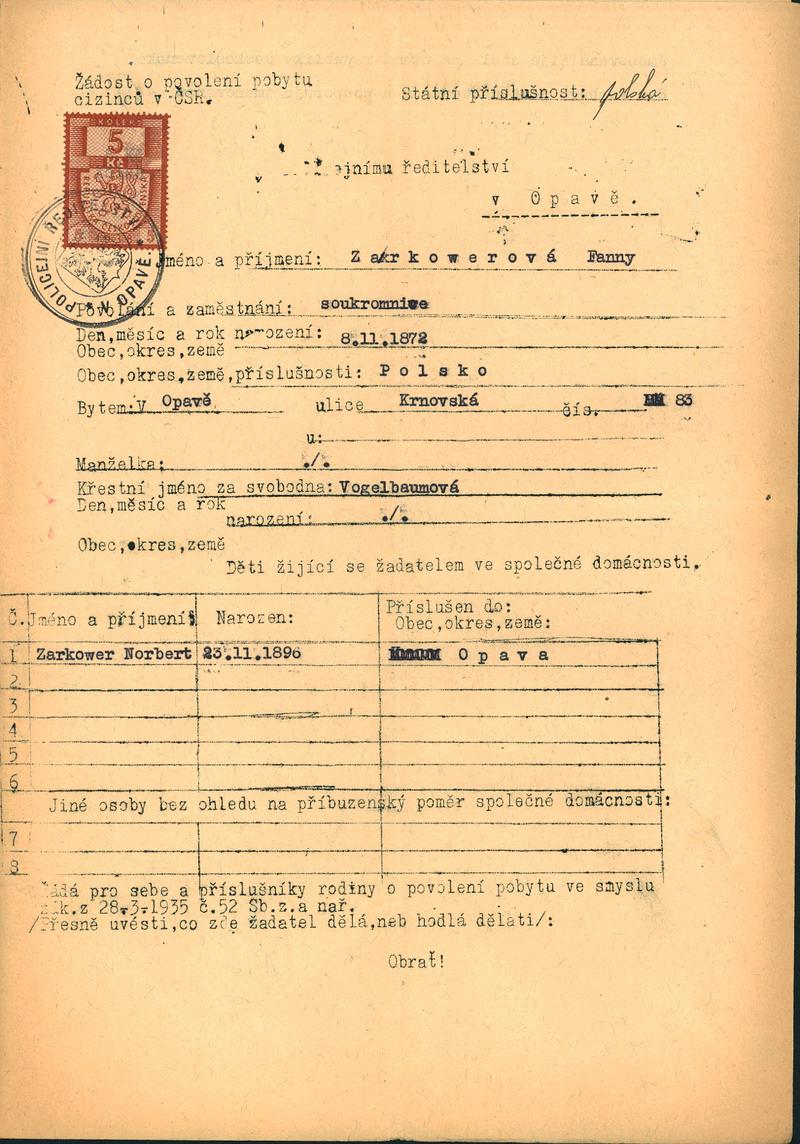 National archives Prague > Police Directorate Prague > 1941-1950 > Z > Zarkowerová Ester