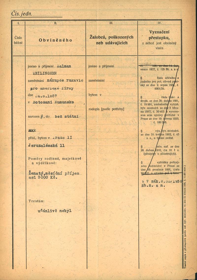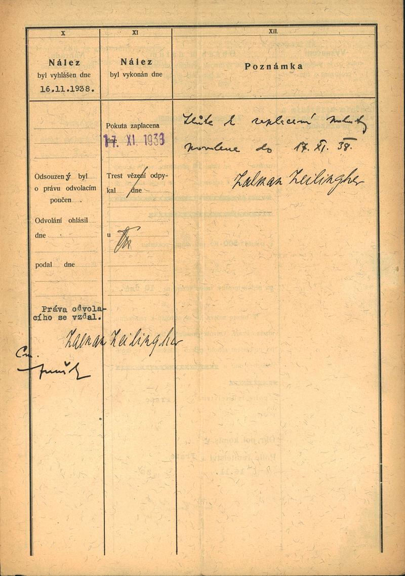 Zeilinger Zalman: Trestní řízení