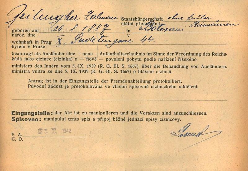 Zeilinger Zalman: Žádost o povolení pobytu