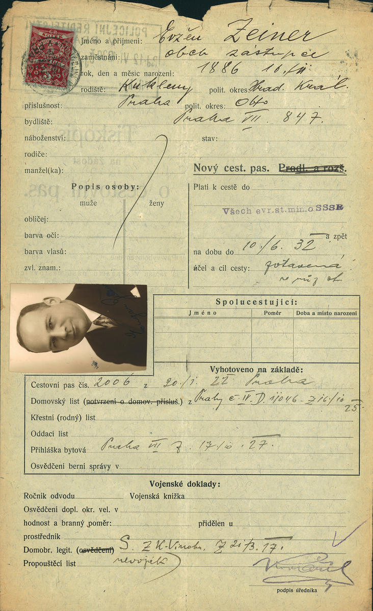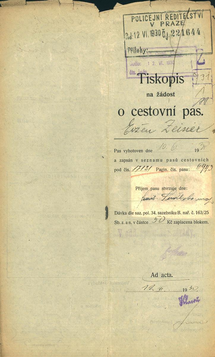 Zeiner Eugen: Žádost o vydání cestovního pasu