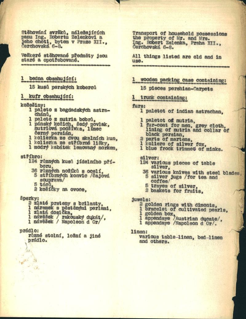 Zelenka Robert: Seznam stěhovacích svršků