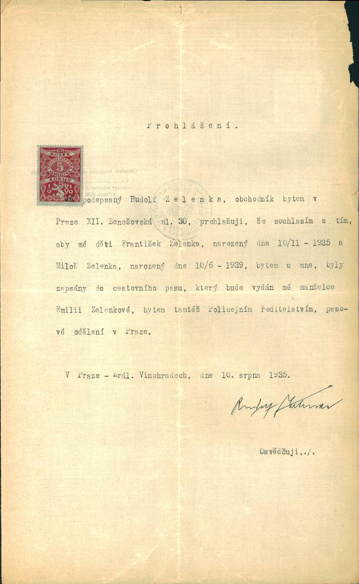 Zelenková Emilie: Souhlas s připsáním dětí do cestovního pasu