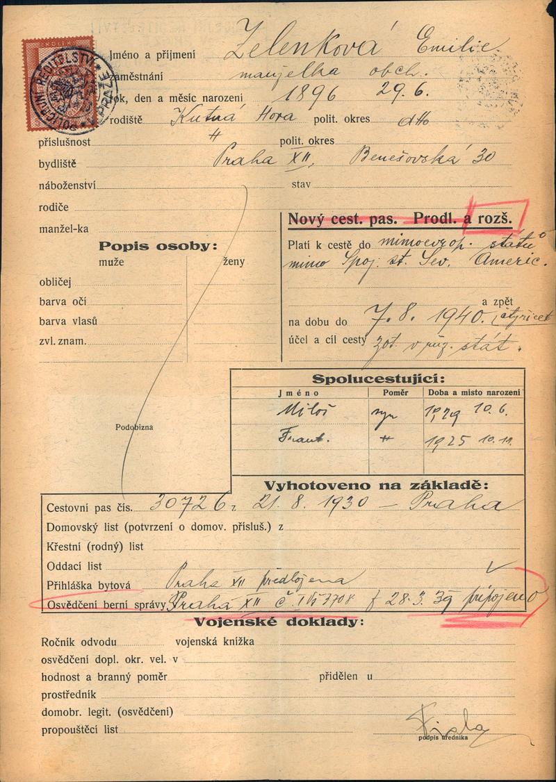 Zelenková Emilie: Žádost o rozšíření cestovního pasu
