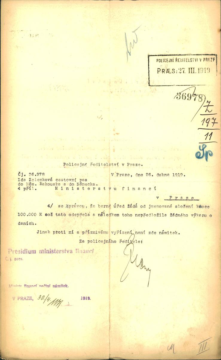 Zellenková Ida: Žádost o vydání cestovního pasu