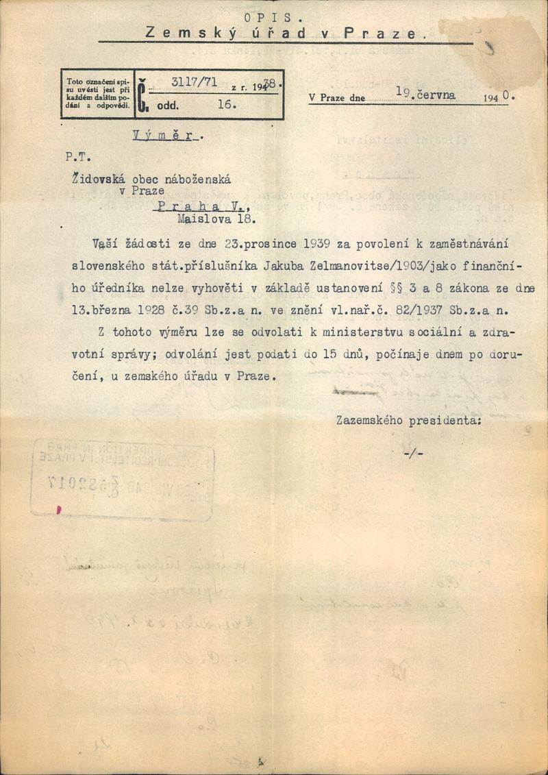 National archives Prague > Police Directorate Prague > 1941-1950 > Z > Zelmanovits Jakub