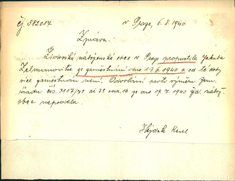 Zelmanovits Jakub: Potvrzení o zeměstnání