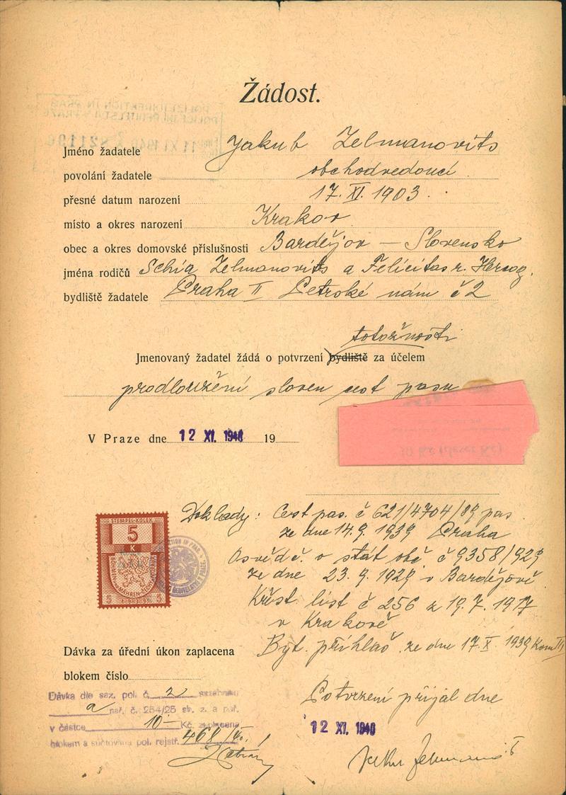 National archives Prague > Police Directorate Prague > 1941-1950 > Z > Zelmanovits Jakub