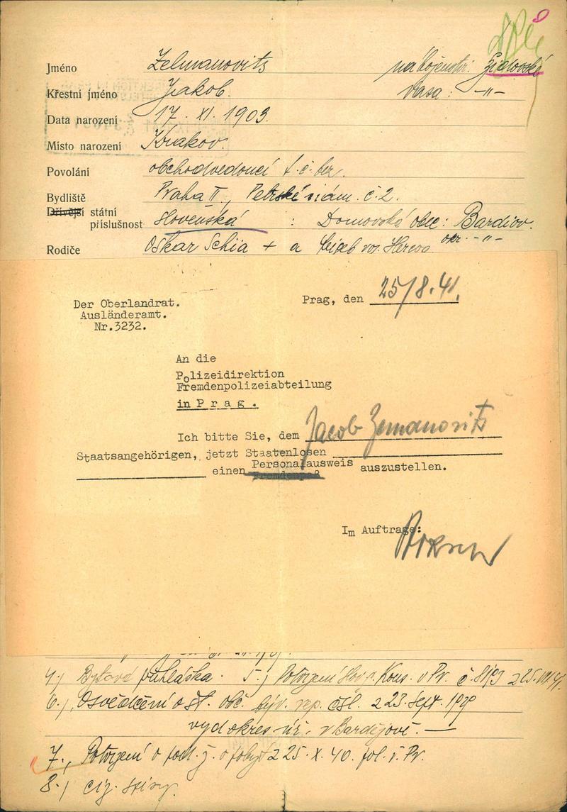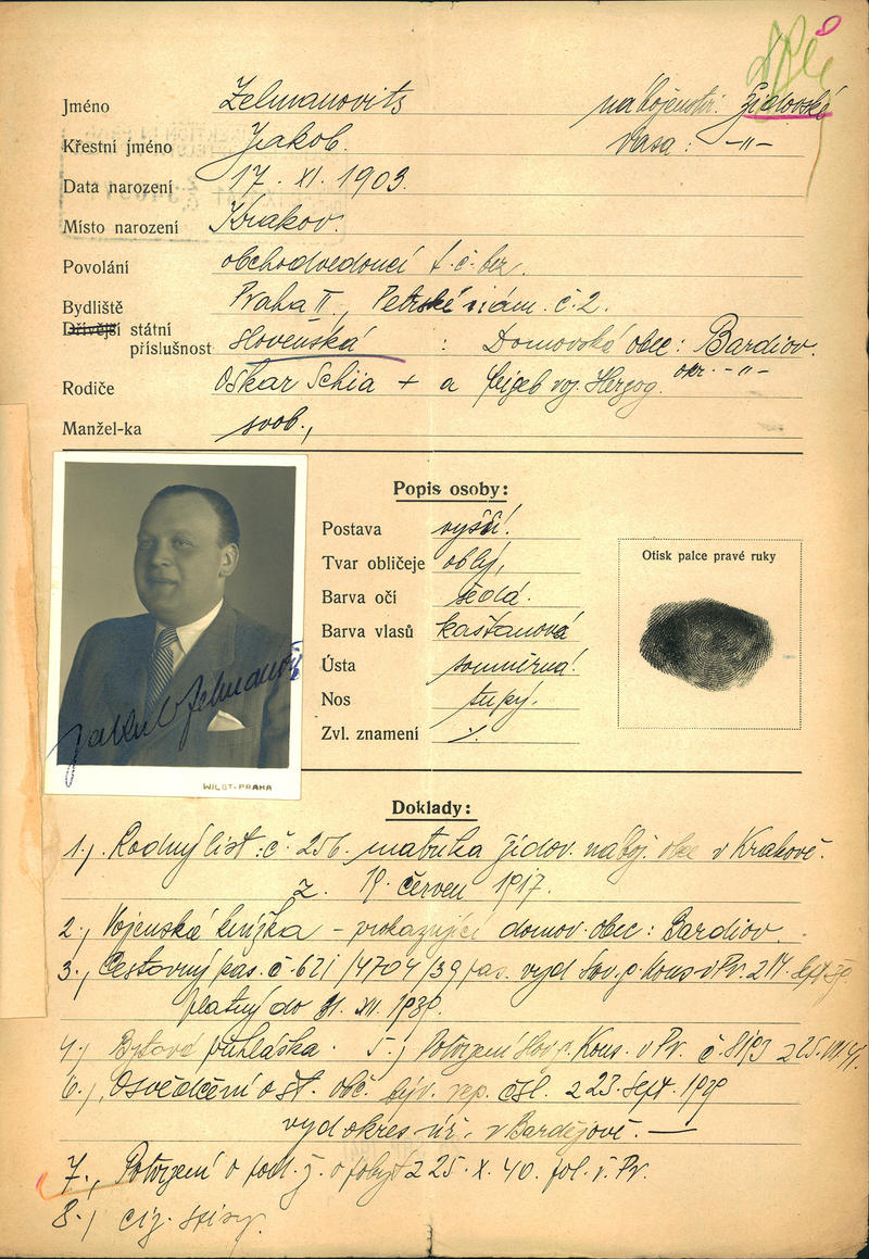 National archives Prague > Police Directorate Prague > 1941-1950 > Z > Zelmanovits Jakub