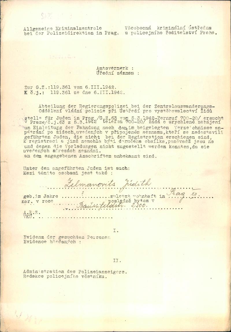 National archives Prague > Police Directorate Prague > 1941-1950 > Z > Zelmanovitsová Judith