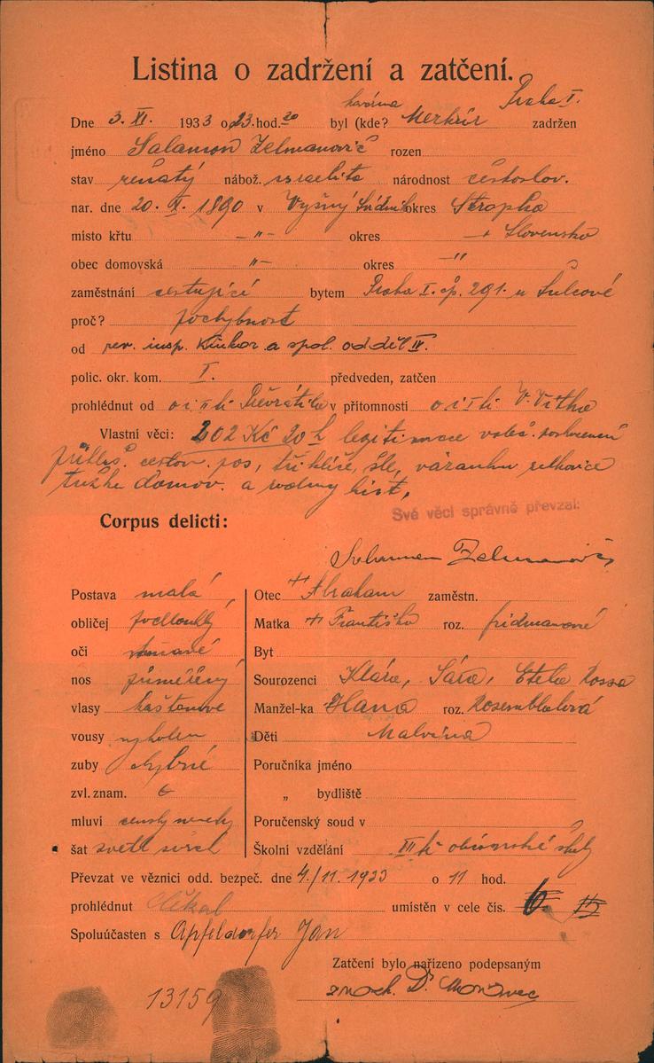 National archives Prague > Police Directorate Prague > 1941-1950 > Z > Zelmanovits Šalomoun