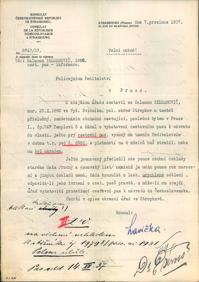 Zelmanovits Šalomoun: Šetření ve věci ztráty cestovního pasu