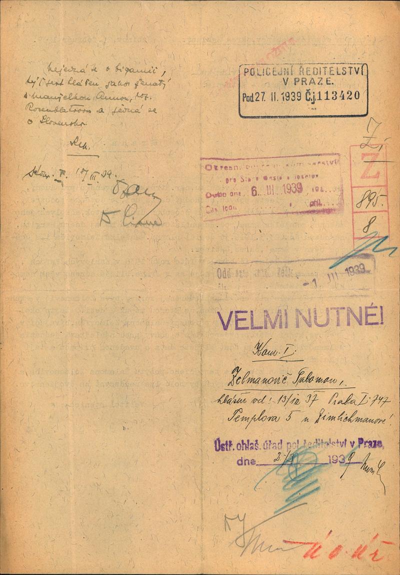 National archives Prague > Police Directorate Prague > 1941-1950 > Z > Zelmanovits Šalomoun