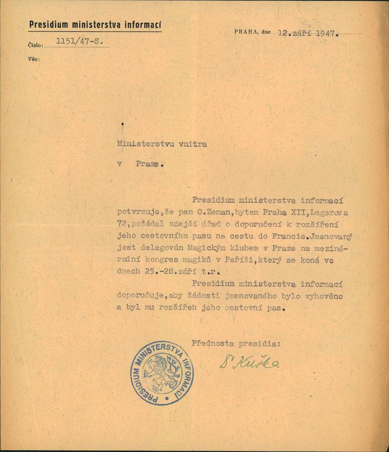 Zeman Otokar: Doporučení k rozšíření cestovního pasu