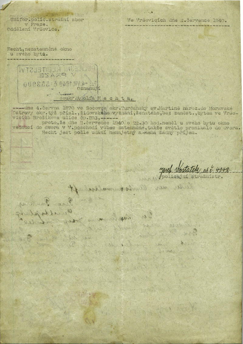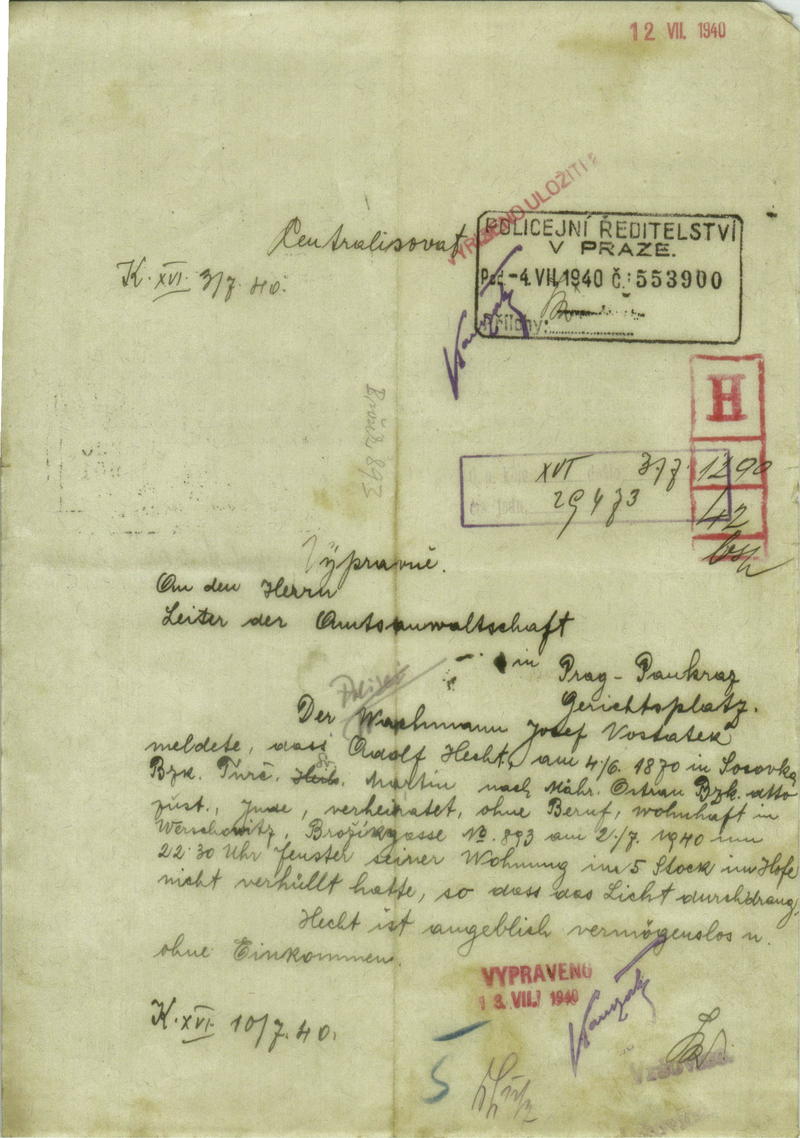 National archives Prague > Police Directorate Prague > 1931-1940 > H > Hecht Adolf