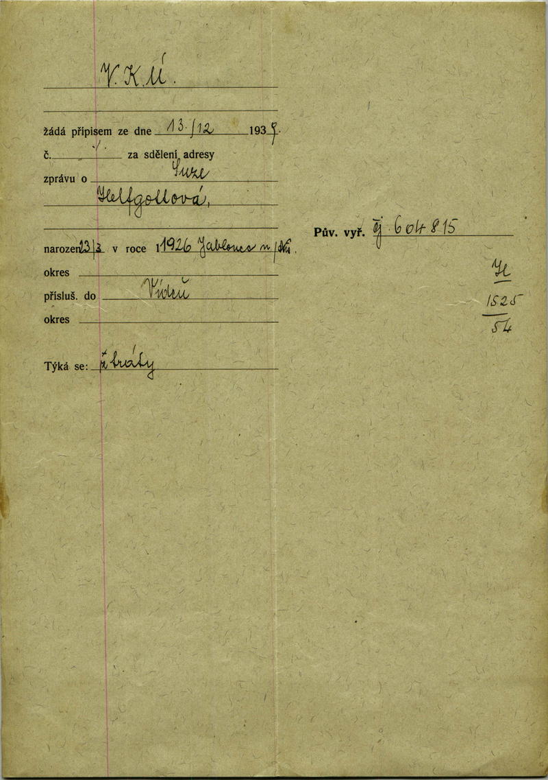 This database contains the names and fates of those who were deported from the territory of today’s Czech Republic, be it their homeland or may they have been deported to the Theresienstadt ghetto before from different european countries. Further, it contains basic information on those men, women and children, most of whom were Roma or Sinti, who died as prisoners of the so-called „Gypsy camp I“ Lety u Písku.