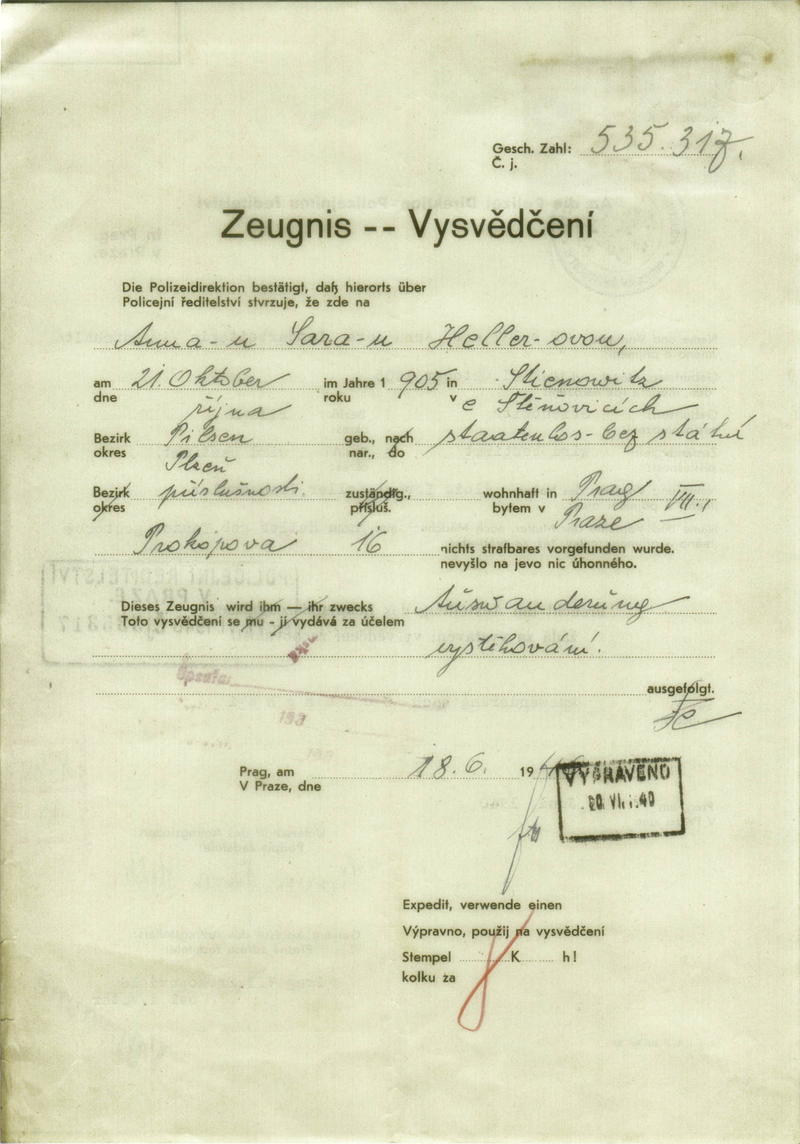 National archives Prague > Police Directorate Prague > 1931-1940 > H > Hellerová Anna