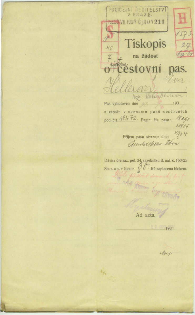 National archives Prague > Police Directorate Prague > 1931-1940 > H > Hellerová Eva