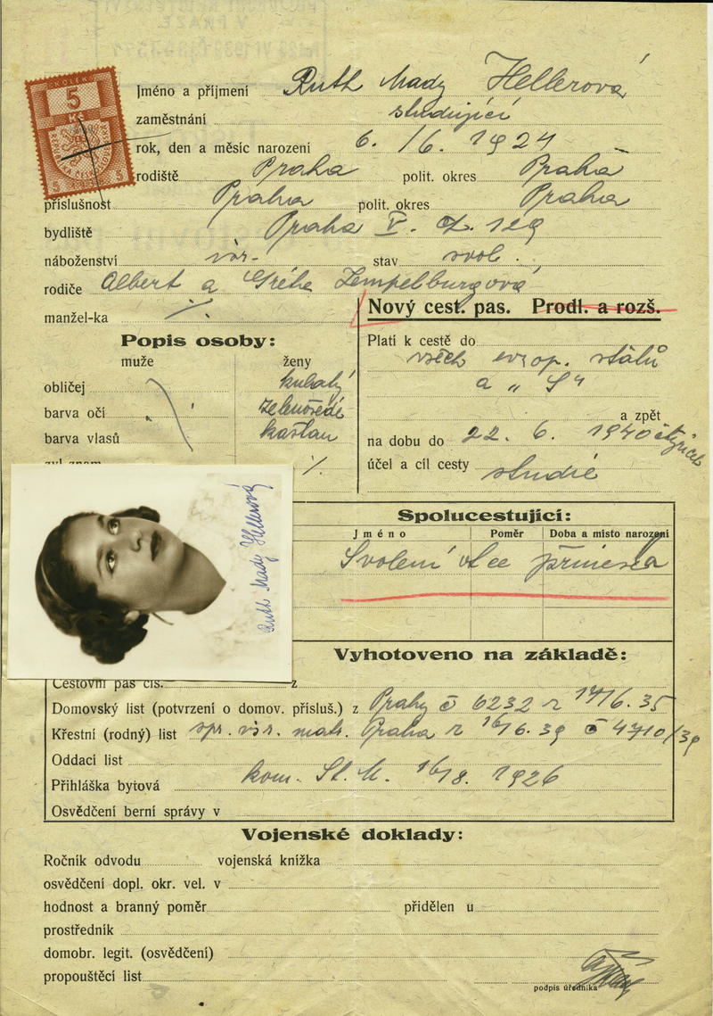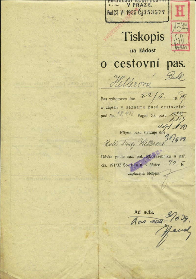Hellerová Ruth: Žádost o vydání cestovního pasu