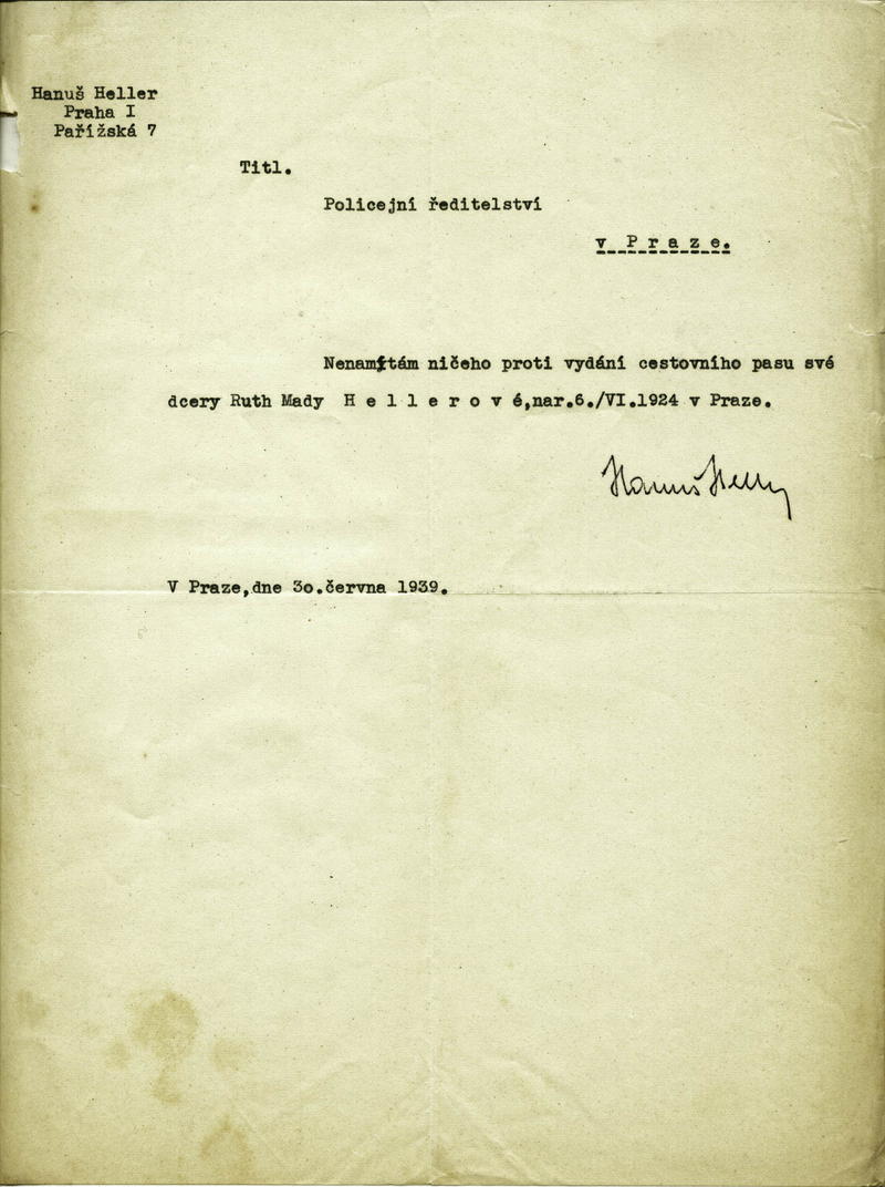 Hellerová Ruth: Souhlas s vydáním cestovního pasu