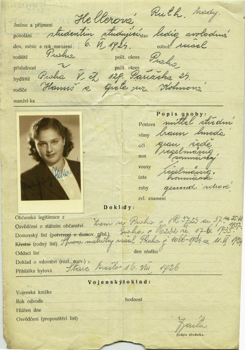 Hellerová Ruth: Žádost o vydání občanské legitimace