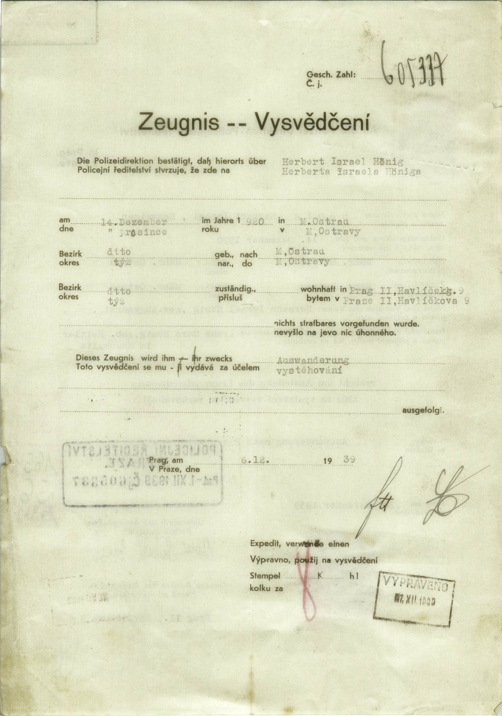 Hönig Herbert: Vysvědčení zachovalosti