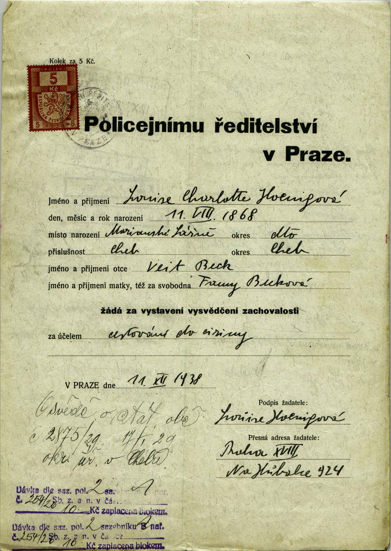 Hönigová Luisa: Žádost o vystavení vysvědčení zachovalosti