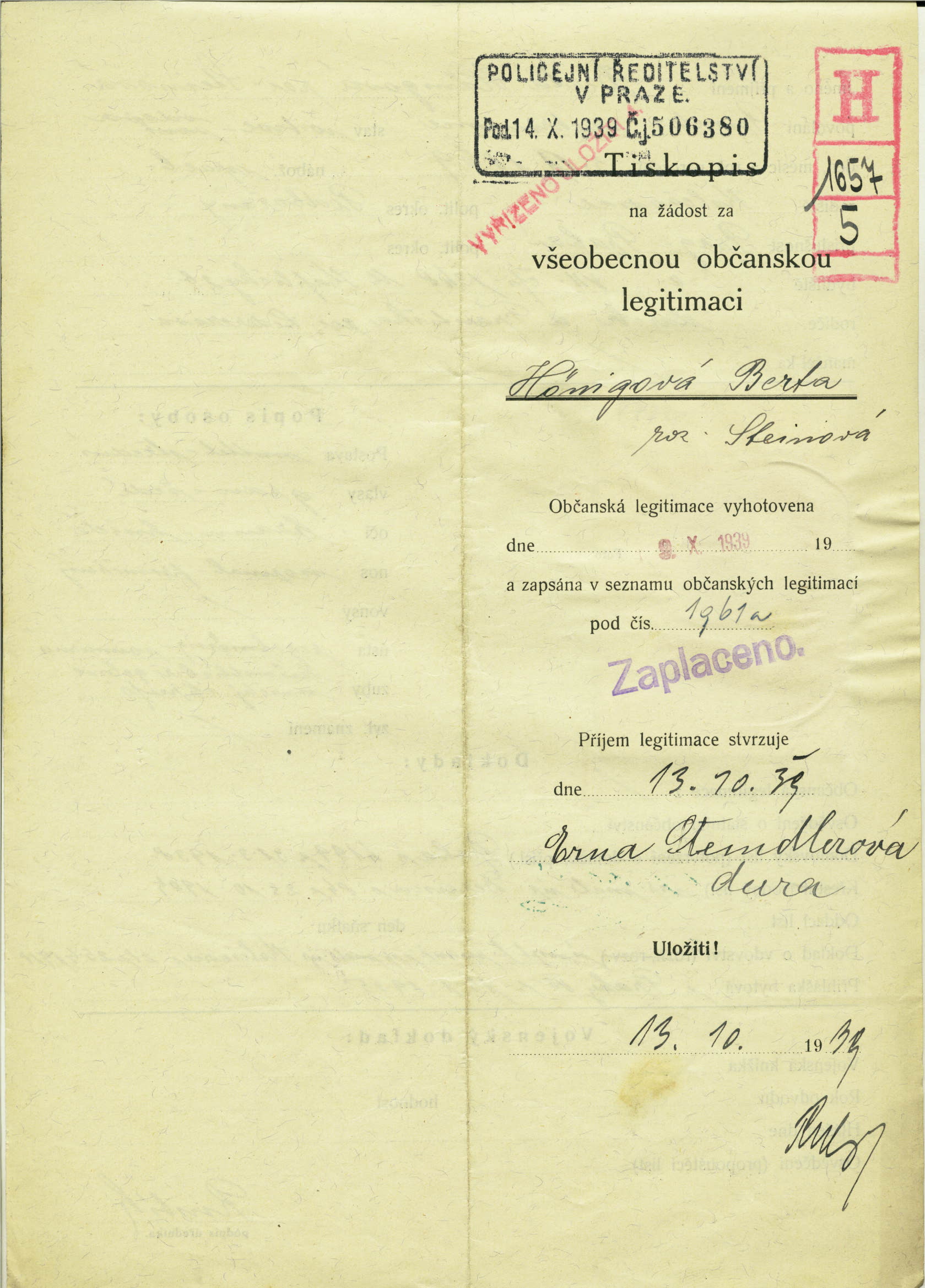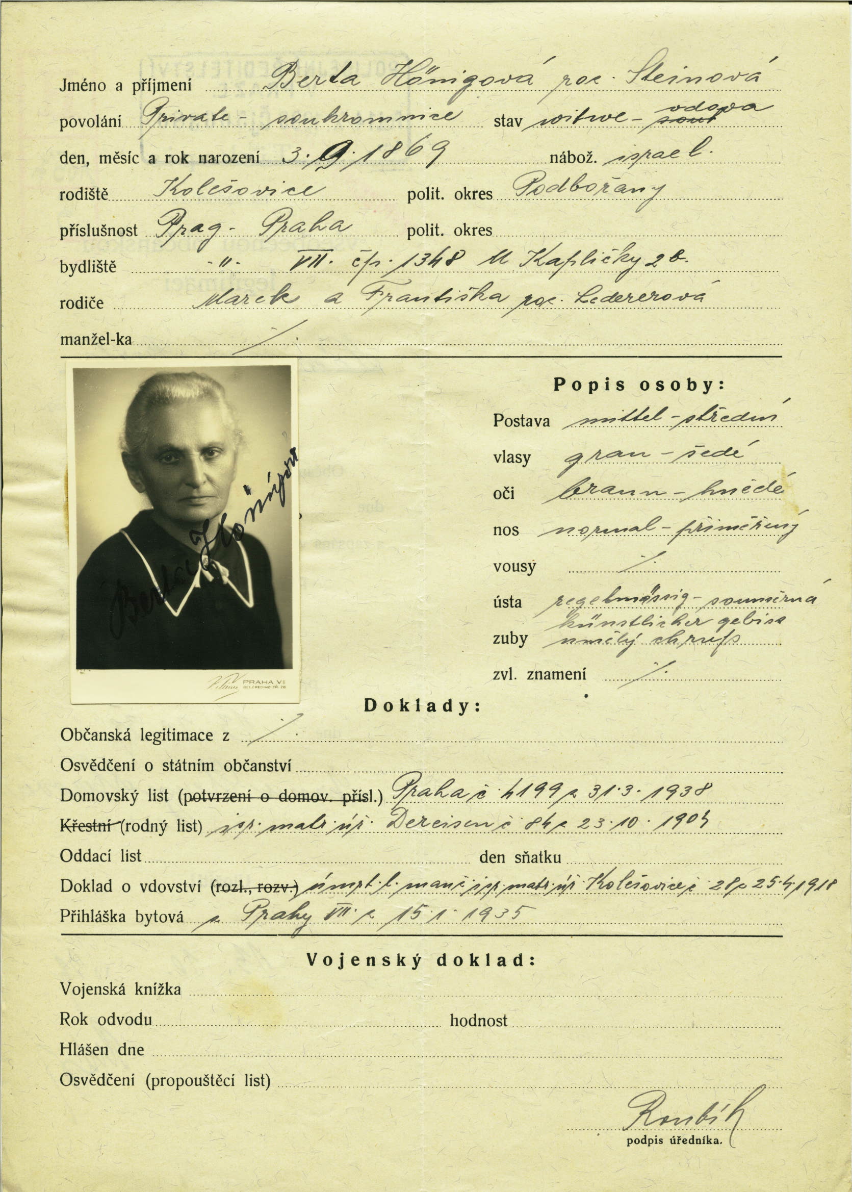 Hönigová Berta: Žádost o vydání občanské legitimace