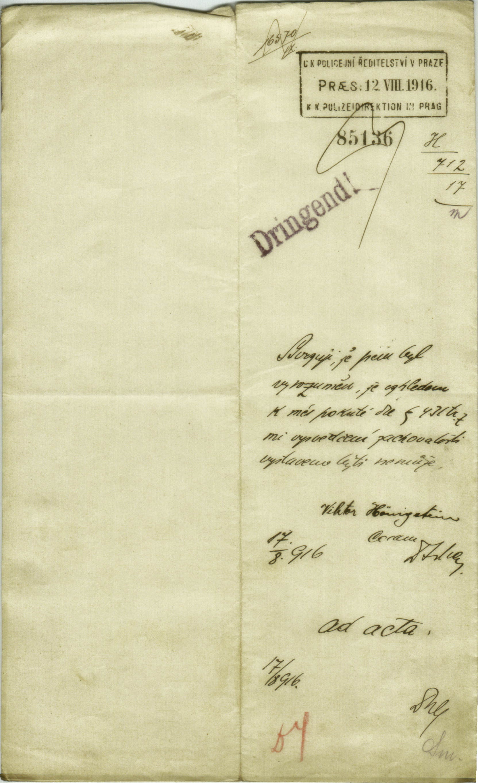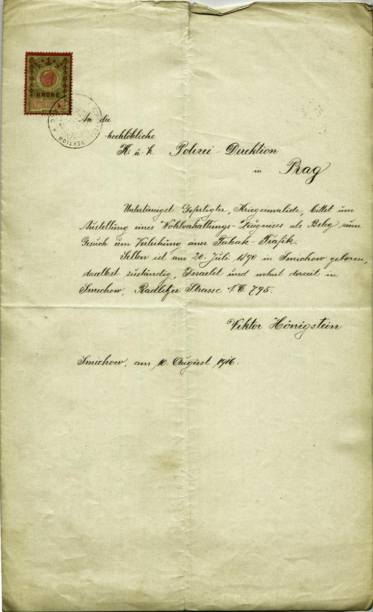 Hönigstein Viktor: Žádost o vystavení vysvědčení zachovalosti