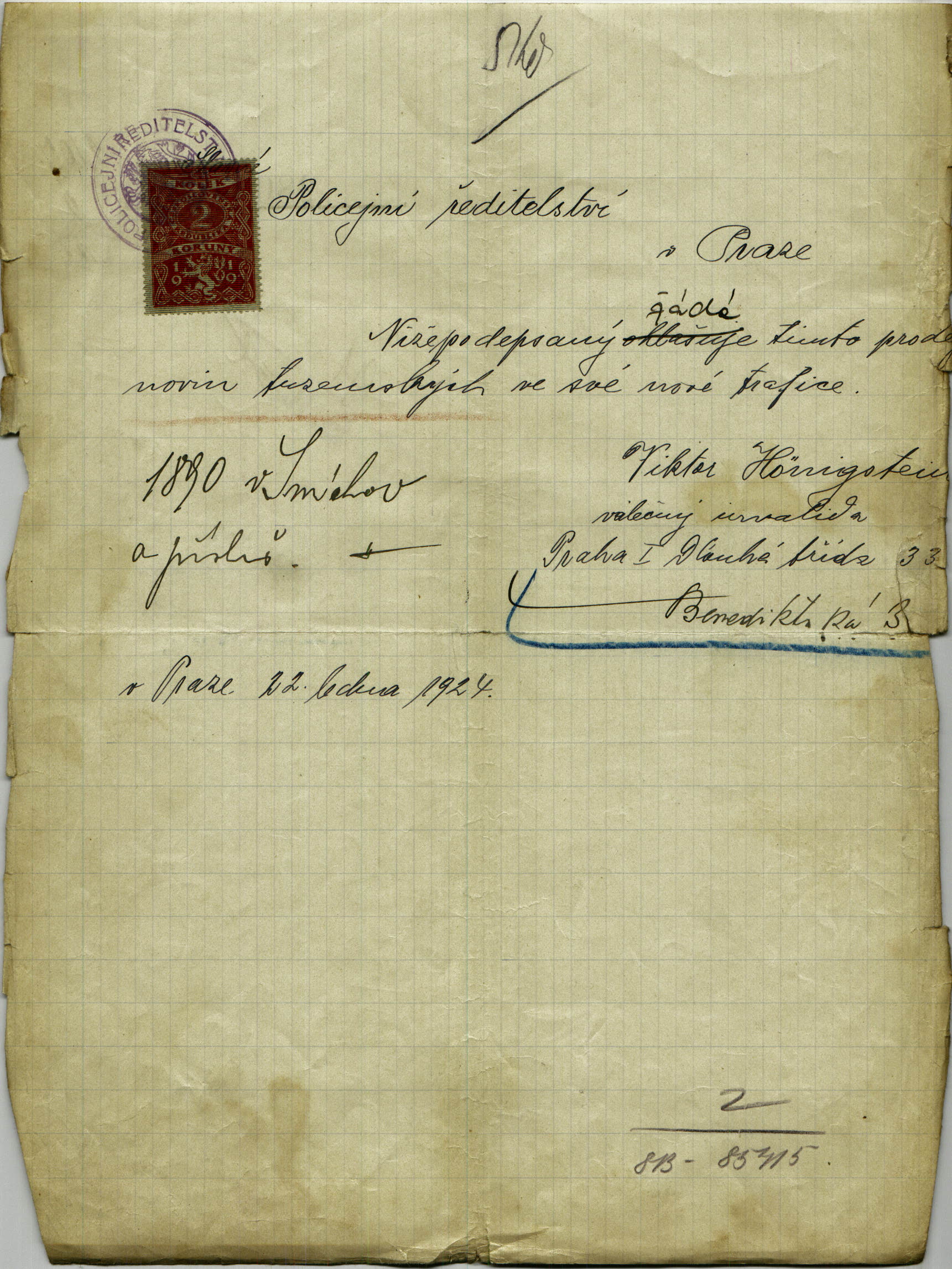 Hönigstein Viktor: Žádost o prodej tuzemských novin v trafice