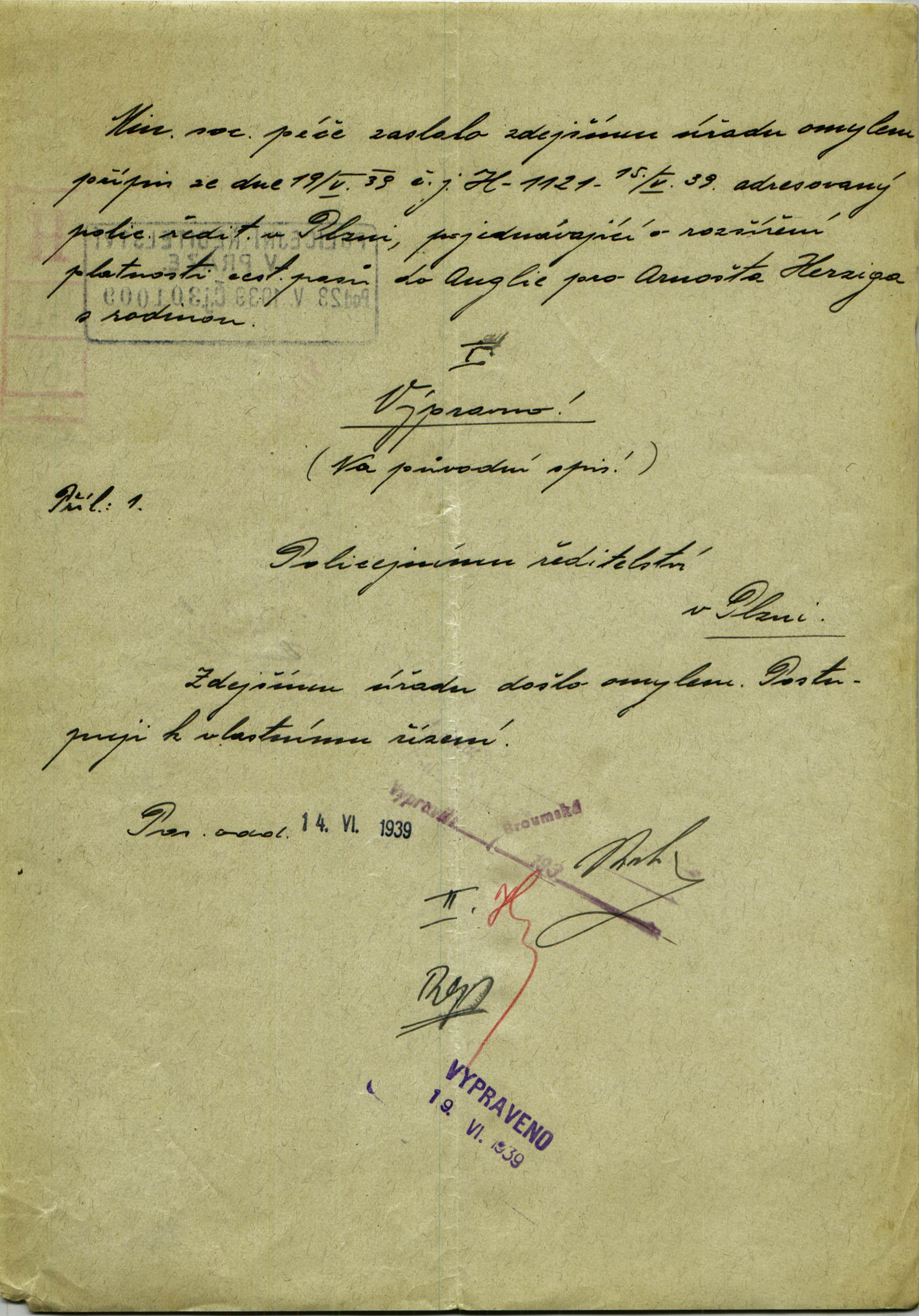 Herzig Ernst: Žádost o rozšíření cestovního pasu