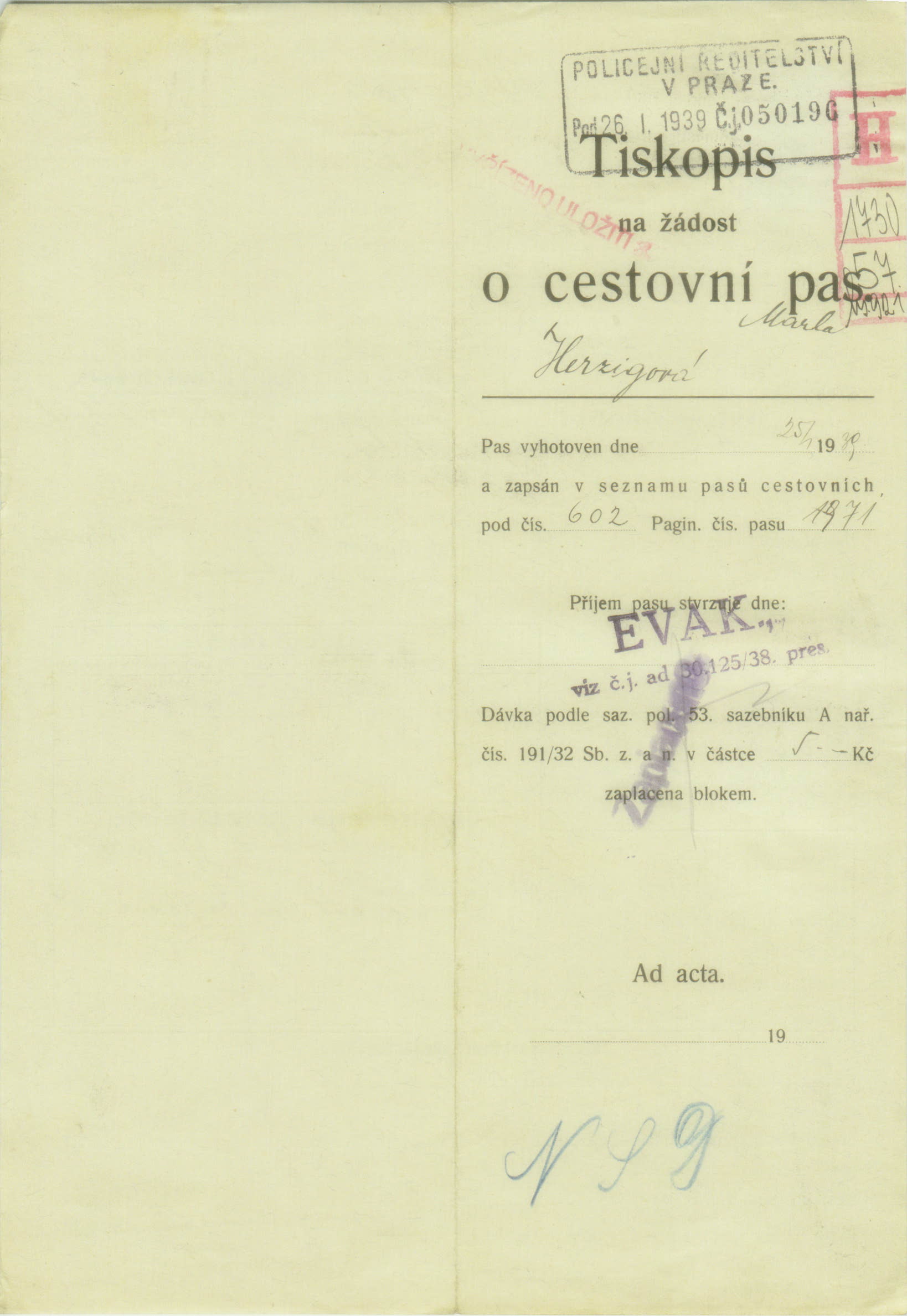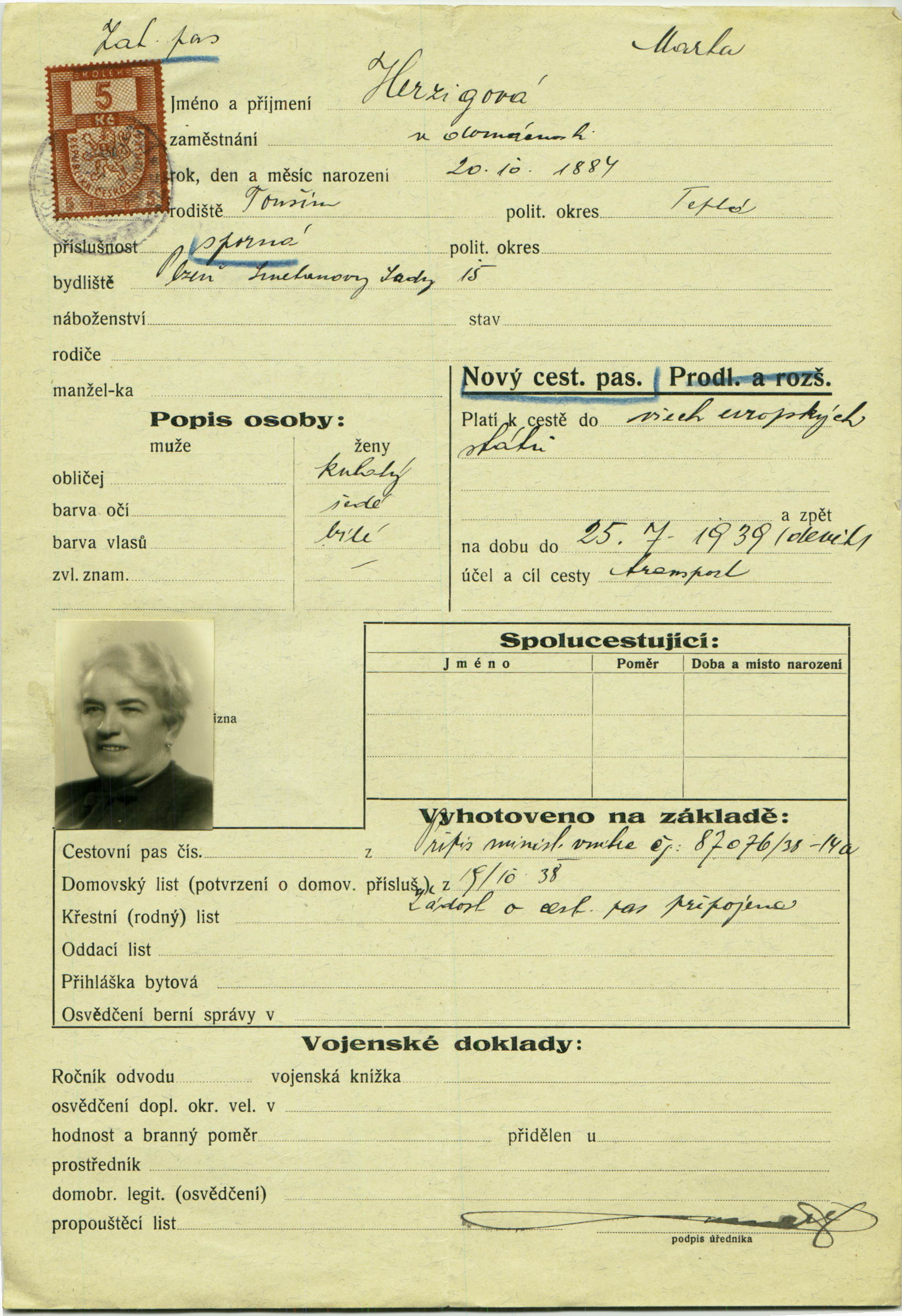 Herzigová Marta: Žádost o vydání prozatímního cestovního pasu