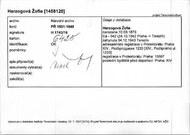 This database contains the names and fates of those who were deported from the territory of today’s Czech Republic, be it their homeland or may they have been deported to the Theresienstadt ghetto before from different european countries. Further, it contains basic information on those men, women and children, most of whom were Roma or Sinti, who died as prisoners of the so-called „Gypsy camp I“ Lety u Písku.
