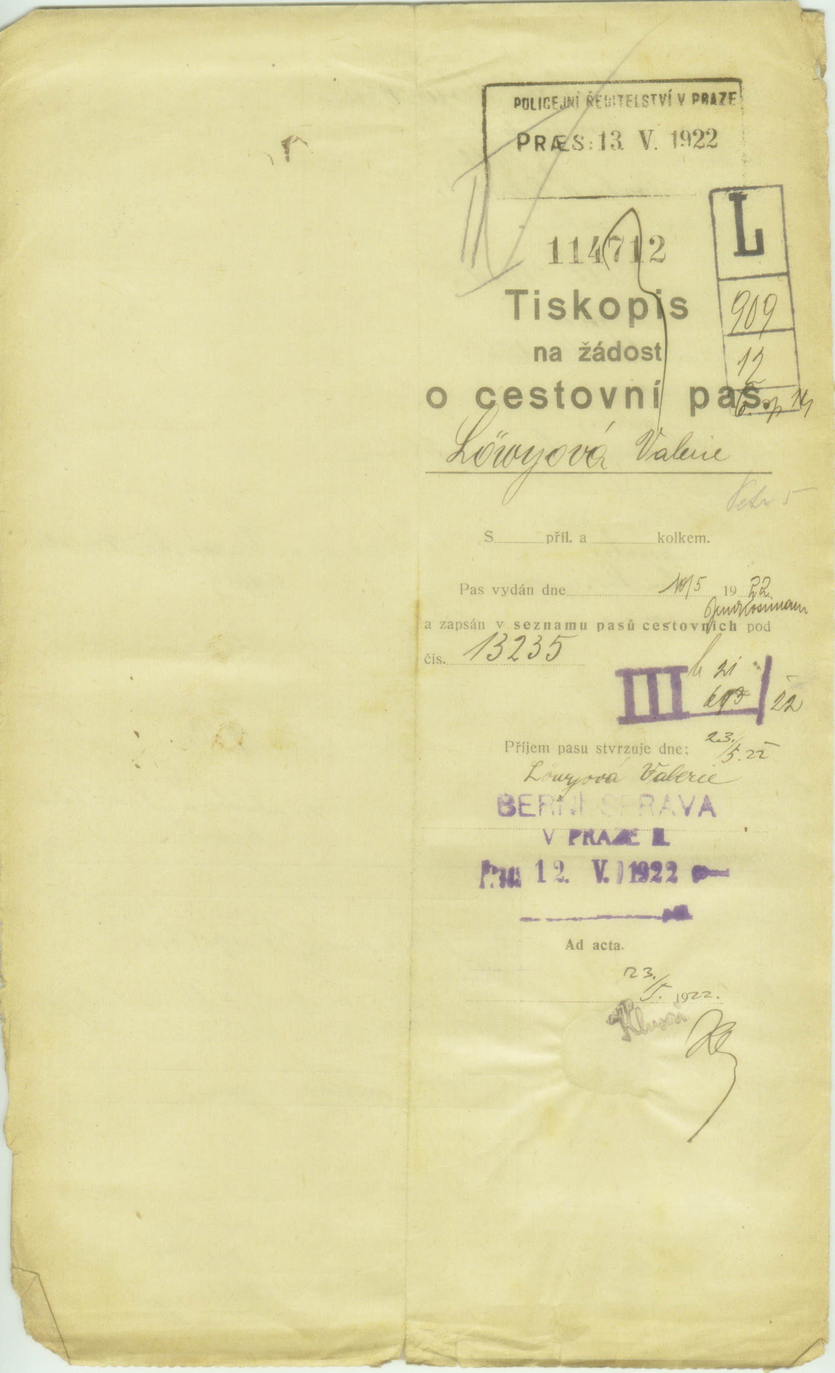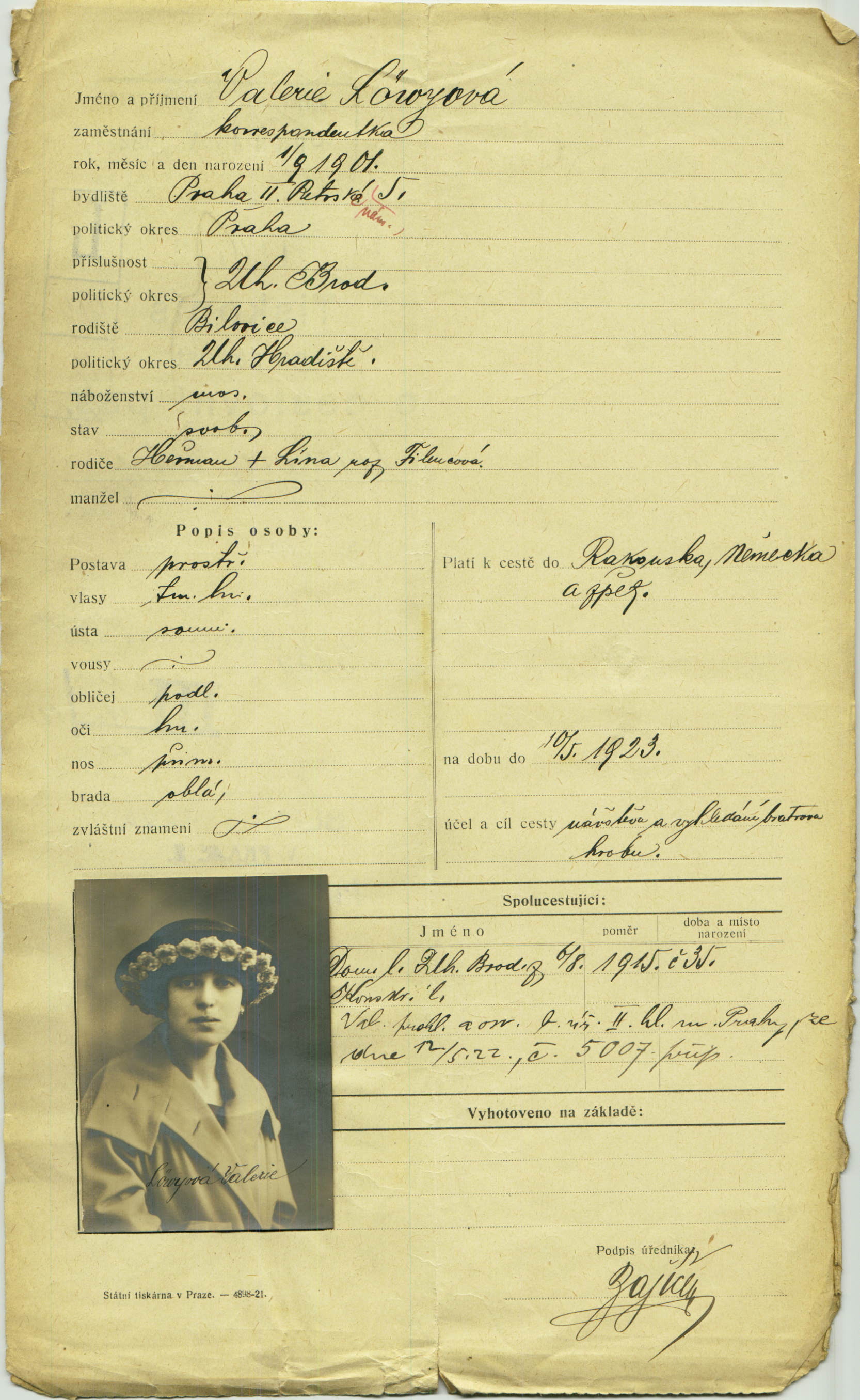 Herzogová Valerie: Žádost o vydání cestovního pasu