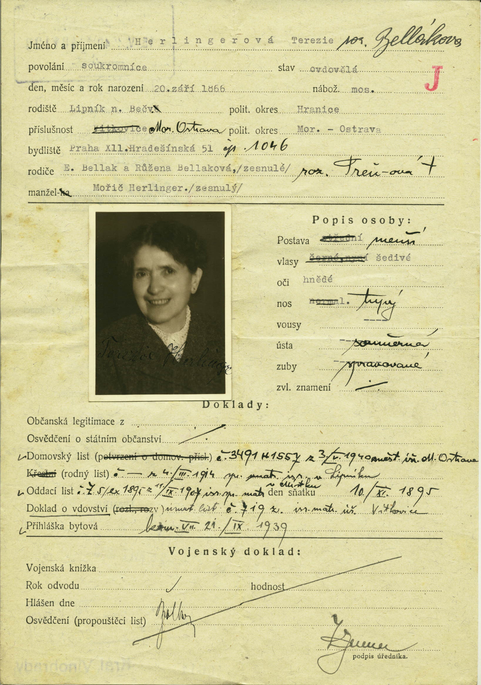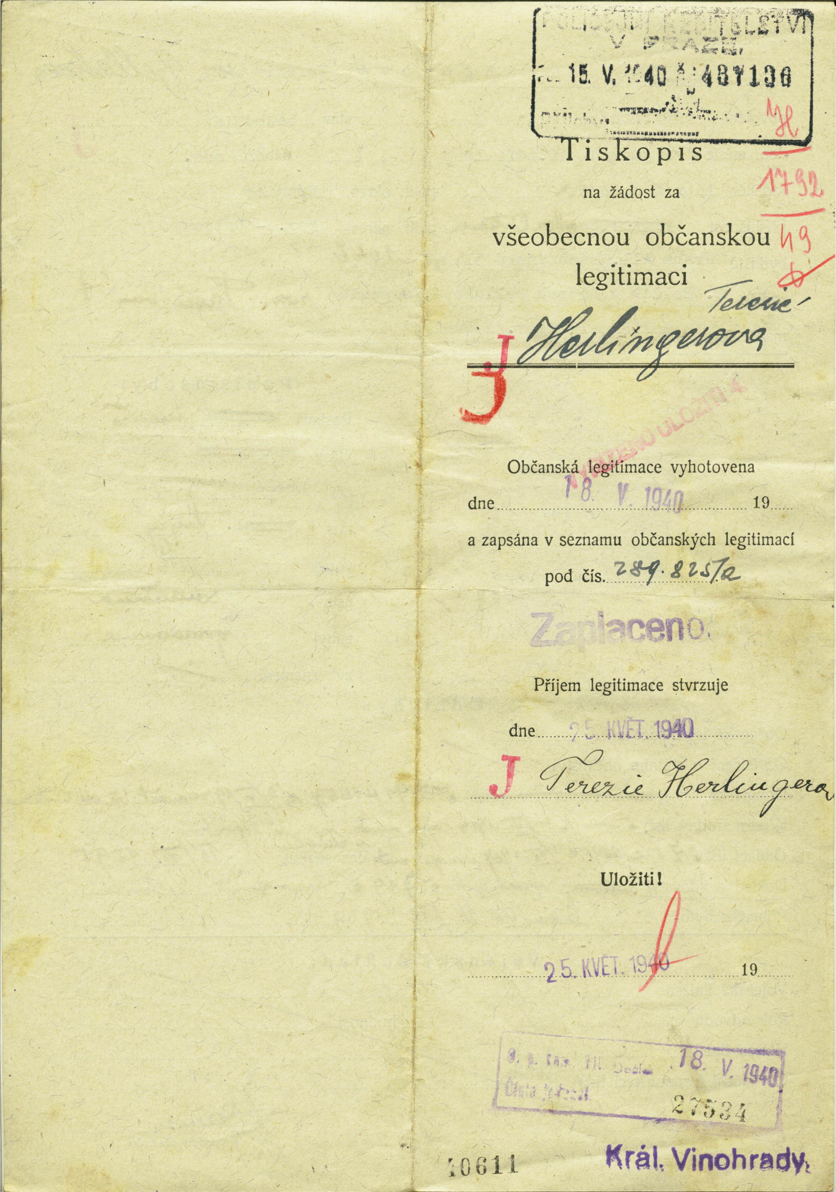 Herlingerová Terezie: Žádost o vydání občanské legitimace