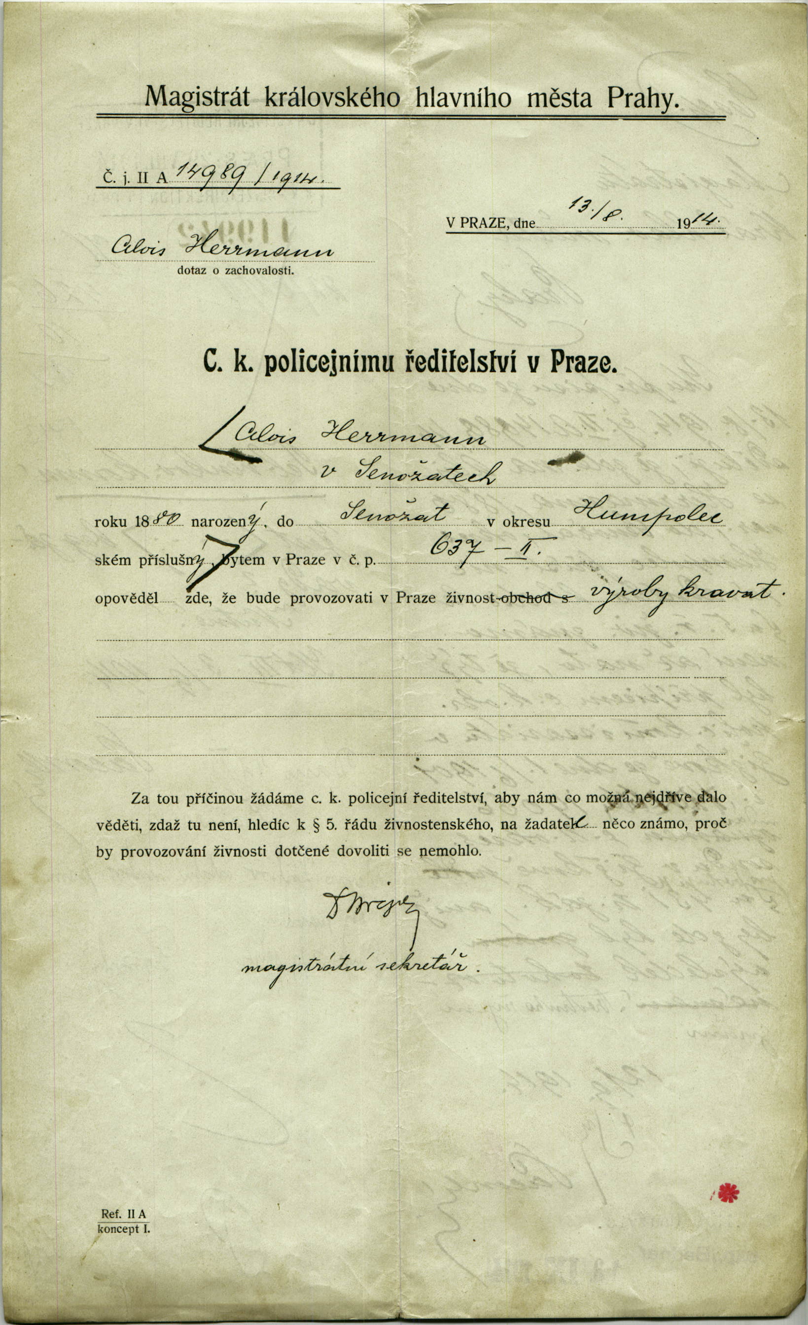 Herrmann Alois: Šetření ve věci provozování živnosti