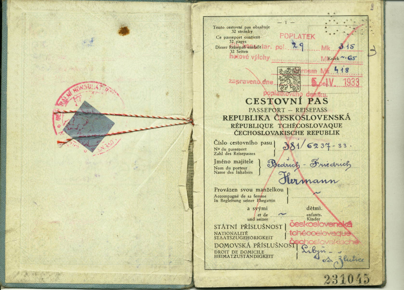 Herrmann Bedřich: Cestovní pas