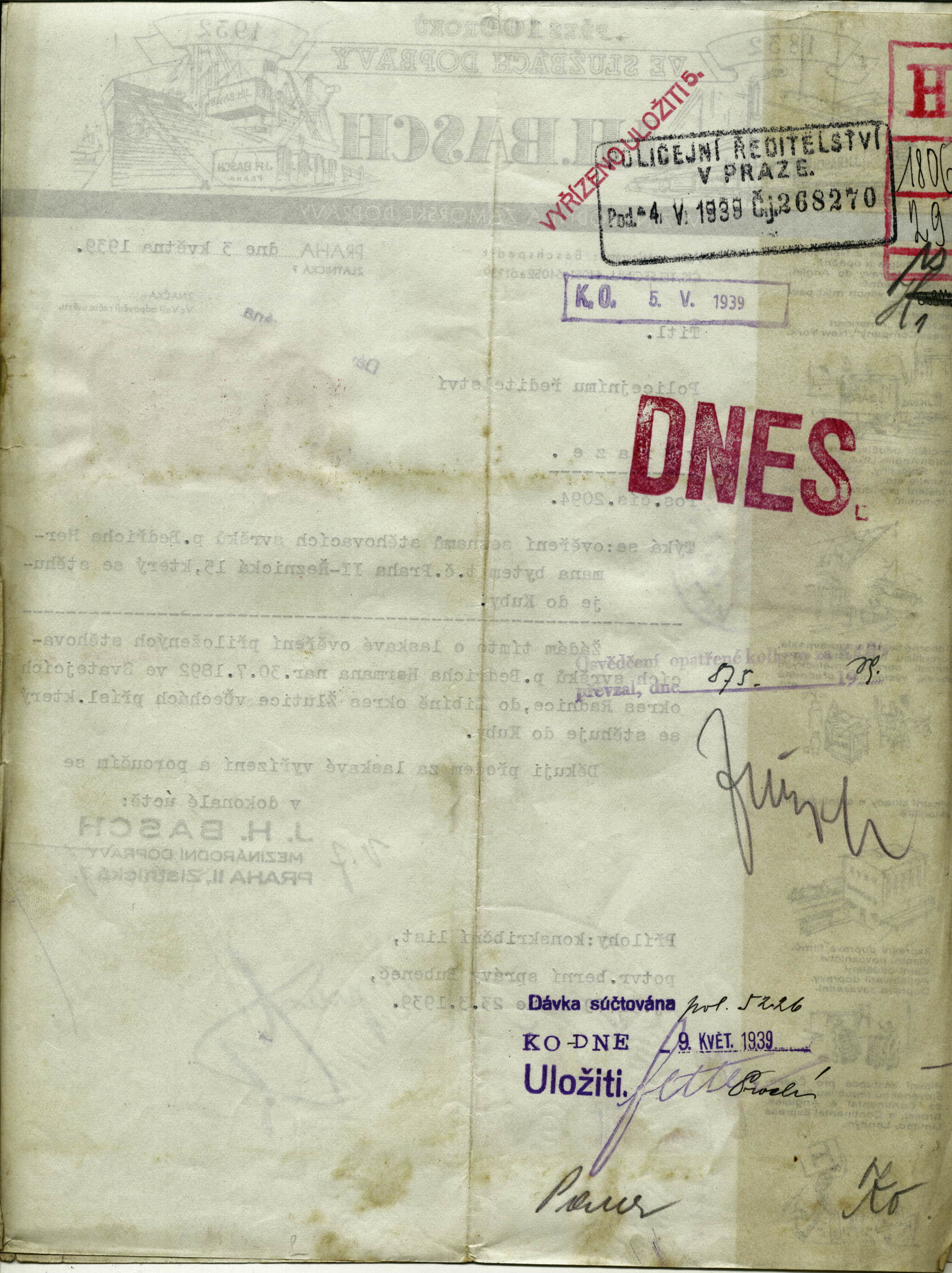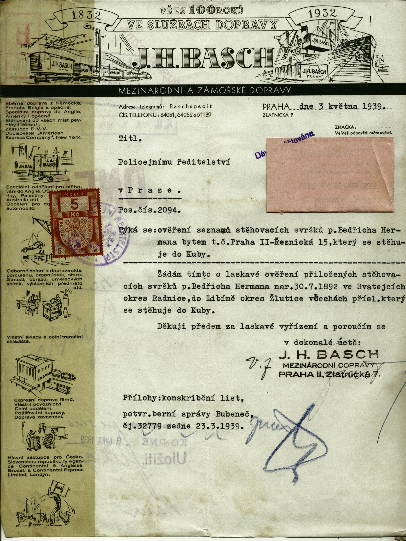 Herrmann Bedřich: Žádost o potvrzení seznamu stěhovacích svršků