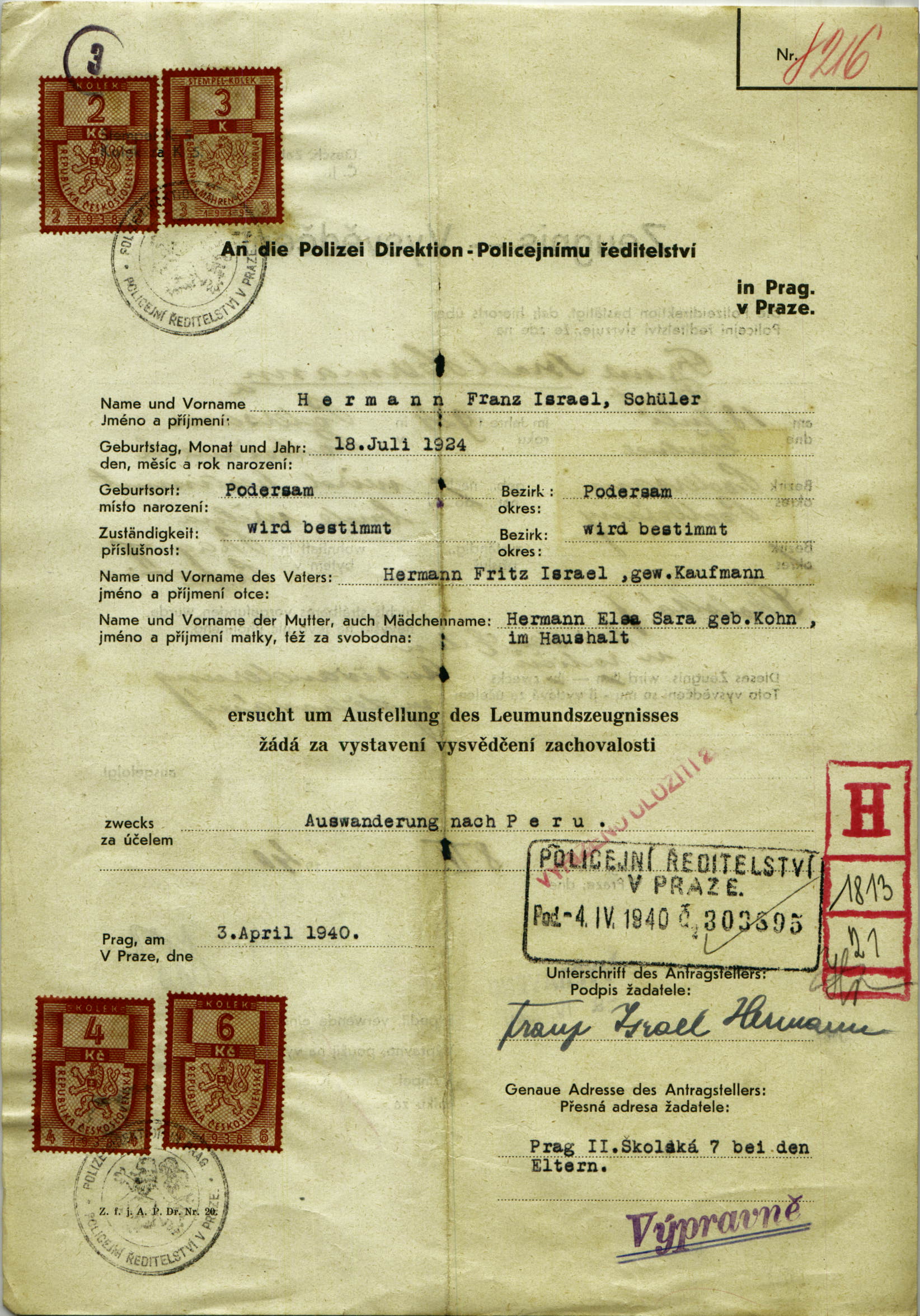 Hermann František: Vysvědčení zachovalosti